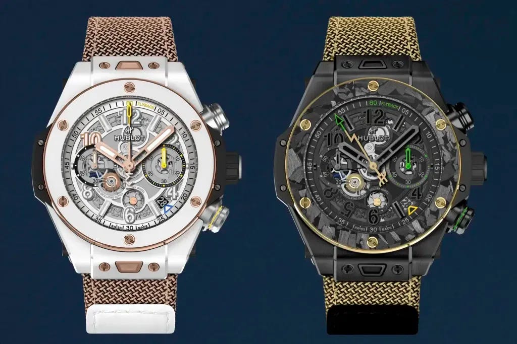 Hublot’s Big Bang Reloaded limited editions at Watches and Wonders 2026 are positioned as two parallel narratives built on the same technical foundation, each tied closely to a brand ambassador’s identity. The Usain Bolt edition leans into symbolism and personal mythology with Jamaican-color accents, a lightning-bolt chronograph hand, and engraved messaging that underscores legacy and record-setting performance. The Kylian Mbappé version flips the tone to a brighter, more modern presence with white ceramic and King Gold, emphasizing confidence and forward ambition. Both share Hublot’s in-house Unico flyback chronograph architecture and are limited in production, using design storytelling as the key differentiator.