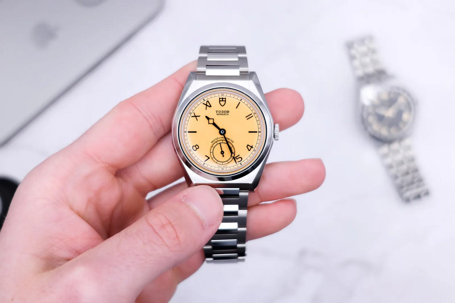 The Tudor Monarch is a centenary-era release that blends vintage cues with modern specs, centered on a 39mm stainless steel case and a polished bezel. Its papyrus-toned dial uses a three-hand layout with small seconds at 6 o’clock and a California-style mix of numerals that gives it a distinctive, legible character. Power comes from the METAS-certified Tudor calibre MT5662-2U, shown through an exhibition caseback, with a stated 65-hour power reserve. The review notes some mixed reactions around value versus prior Tudor pricing, but overall collector response appears generally positive.