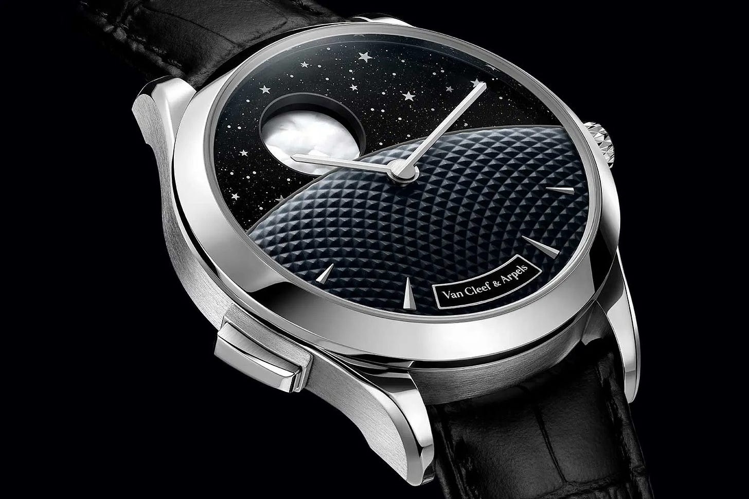 Van Cleef & Arpels’ 2026 presentation focuses on emotional, poetic storytelling through the “Poetry of the Heavens” theme, using celestial motifs to make complications feel romantic and approachable rather than technical for its own sake. Pieces like the Midnight Jour Nuit Phase de Lune and Heure d’ici & Heure d’ailleurs use day/night, moonphase, and dual-time displays as narrative devices that evoke atmosphere and connection. The collection also blends jewelry and horology with secret-watch concepts and richly crafted dials in aventurine, enamel, and miniature painting. The result is a lineup positioned as wearable art—where the mechanics support the story rather than dominate it.