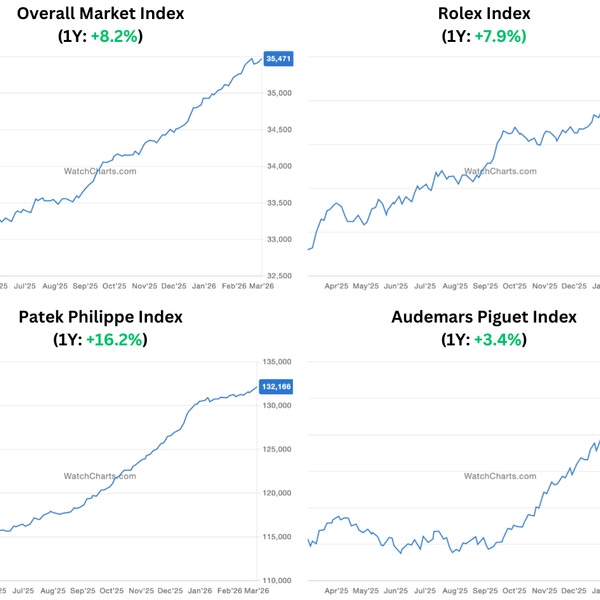 That broader sense of cautious optimism also showed up in the latest market data. March was basically flat, with the overall watch market up just 0.1%, but the more important takeaway is that the recovery has now stretched across five quarters and is broadening. Patek Philippe led the latest gains, while Grand Seiko and Glashütte Original also moved higher. Rolex slipped modestly, with the Sky-Dweller taking a more noticeable hit, but the bigger picture is that far more brands are now positive than they were a year ago. After a long stretch of correction, the market is starting to look less like a triage ward and more like a slow, uneven comeback.