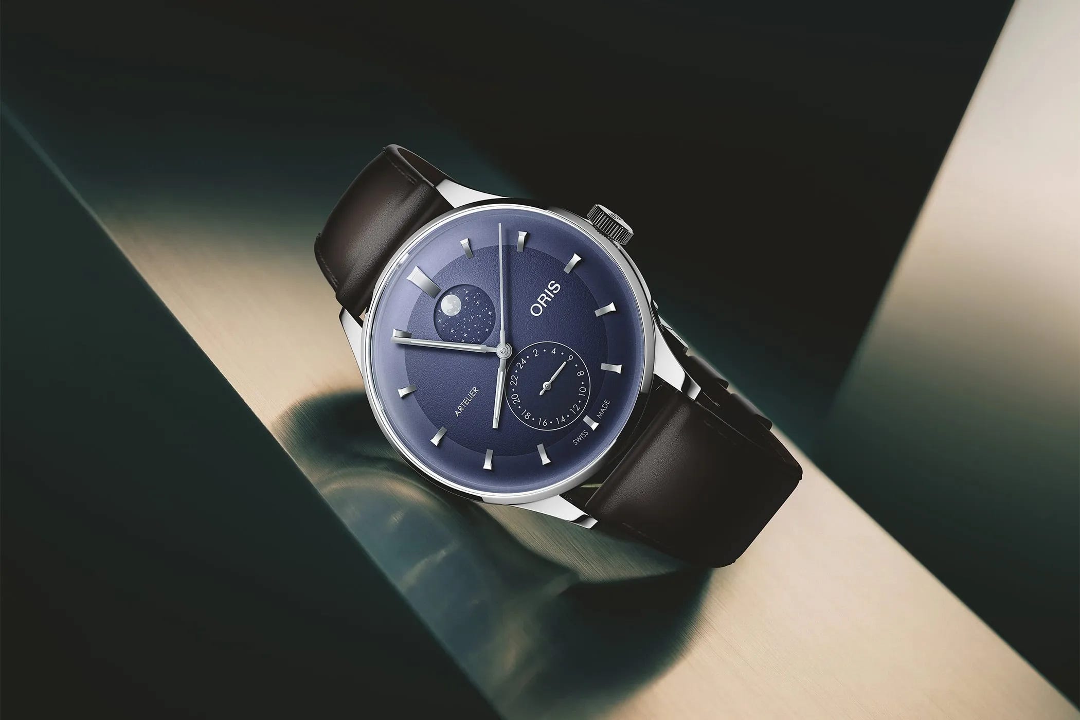 Oris updates the Artelier Complication with a new calibre 782 and a cleaner, more contemporary dial architecture built around two sub-dials: moonphase and a 24-hour second time zone. The 39.5mm steel case and domed sapphire keep it dressy, while a dedicated pusher makes the second time zone adjustment more practical for travel. The movement is based on the Sellita SW200 but reworked to support the new display, with a 41-hour power reserve. Pricing is EUR 2,300 on leather and EUR 2,500 on bracelet, which converts to approximately $2,705 USD and $2,940 USD at current rates.