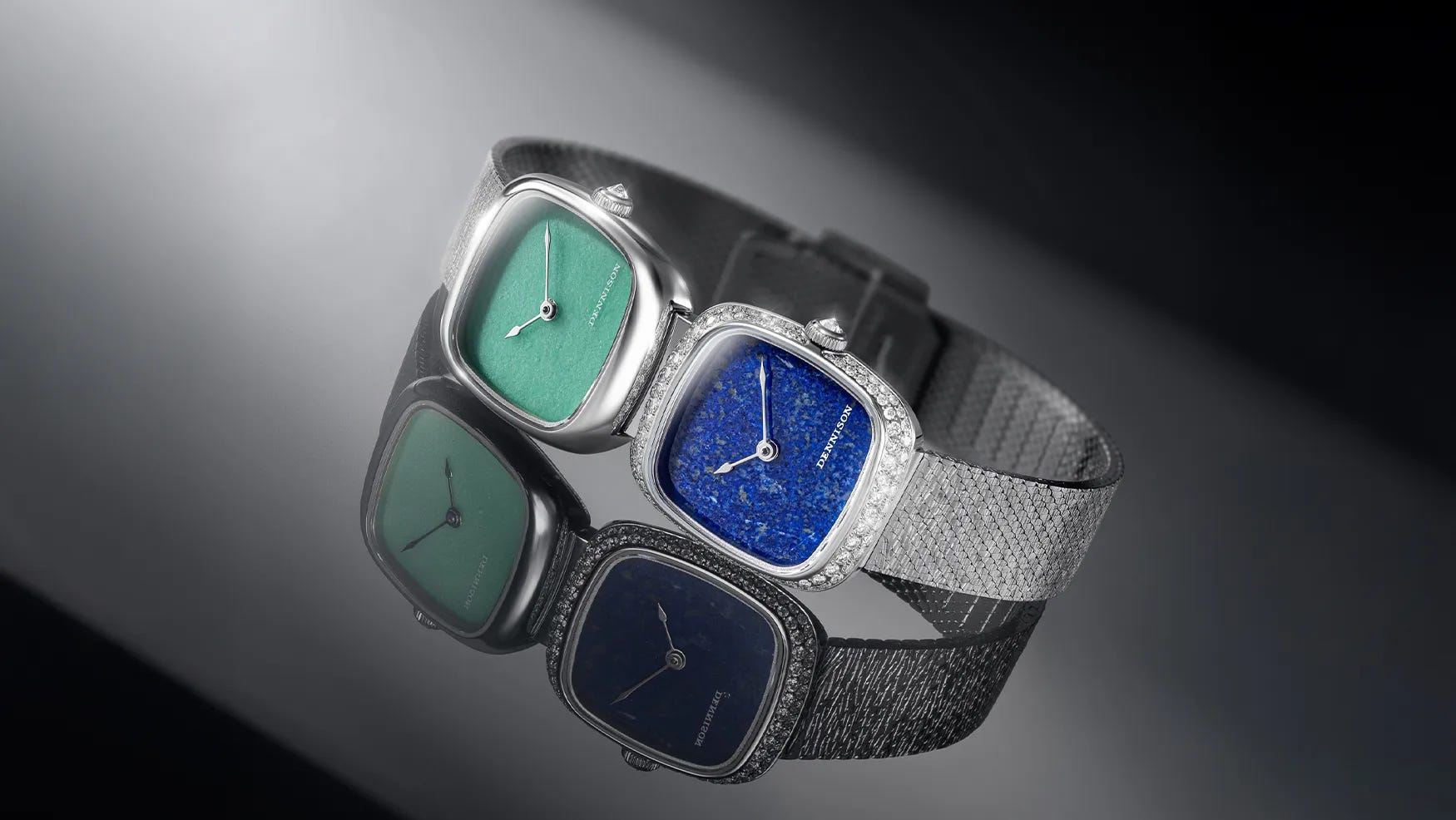 Dennison’s ALD Mini shrinks the brand’s ALD concept into a compact, jewelry-forward format (24.2mm × 22mm and just 6mm thick) while keeping the modular spirit that made the line stand out. A key twist is the quick-release system that can connect two ALD Minis into a dual-watch setup, turning the product into a configurable accessory as much as a timepiece. The lineup uses a Swiss Ronda quartz movement and offers eye-catching stone dials (plus diamond-set variants) with pricing starting at $1,180 USD and rising to $5,600 USD for higher-spec versions. The overall pitch is luxury-as-play: color, modularity, and styling-first versatility without pretending it’s traditional watchmaking.