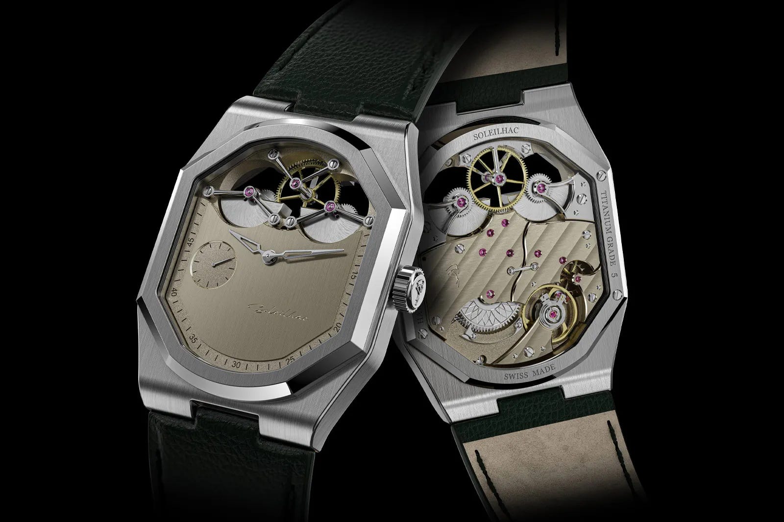 Soleilhac’s Harmonie introduces a dual micro-rotor winding system designed to solve a common ultra-thin problem: too little rotor mass to wind efficiently. By using two smaller rotors integrated into the movement, the watch improves winding performance while turning the mechanism into the visual focal point, reinforced by a skeletonized, marine-chronometer-inspired display. As a souscription project limited to 18 pieces in titanium or gold, it’s positioned as an early foundation for the brand, with the design intended to evolve through collector feedback ahead of late-2026 deliveries.