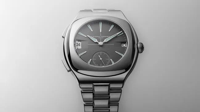 The Sport Traveller Slate Grey adds a highly practical dual-time option to Laurent Ferrier’s sport lineup, pairing a 42mm titanium case and integrated titanium bracelet with 100m water resistance. The opaline slate-grey dial is designed for legibility and travel utility, with pushers that jump the local hour hand in one-hour increments without stopping the movement. Power comes from the in-house LF275.01 automatic caliber beating at 4Hz with a 72-hour power reserve, plus refined finishing details like a platinum micro-rotor. The listed price is CHF 61,000, which converts to approximately $77,900 USD (at ~1 CHF = $1.28).