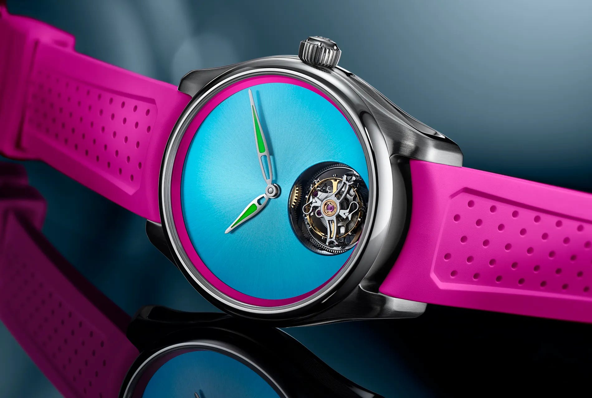Time Graphing Today’s Watch Universe for Wednesday, April 29, 2026 reads like the industry briefly relocated to Miami, Geneva, and La Chaux-de-Fonds—all before lunch—and decided subtlety was optional. H. Moser & Cie. leads the day’s news cycle with a Bucherer-exclusive Pioneer Tourbillon that unapologetically channels South Beach, pairing a blue fumé dial with a pink flange and dropping a double-hairspring tourbillon at six o’clock like it’s the main stage at the Formula 1 Grand Prix. It’s a $75,000 reminder that Moser continues to straddle the line between irreverent design and very serious watchmaking, often in the same reference.