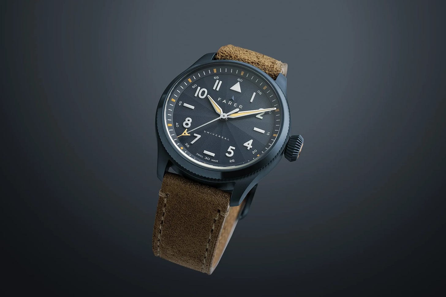 Farer’s Pilot Collection Series II adds four titanium models that emphasize lightweight wear and tool-watch practicality, each using a 40 mm grade-2 titanium case and 100 m water resistance. The watches use a Sellita SW300-1 automatic movement and add magnetic protection via a soft-iron Faraday cage, positioning them as aviation-inspired daily wearers with real-world durability. Dial designs vary across the lineup, including a limited Eastern Arabic-numeral edition capped at 100 pieces, while retaining shared elements like an oversized crown and domed sapphire crystal. Pricing is listed as EUR 1,555 / GBP 1,350 / USD 1,525 (approximately $1,821 / $1,825 / $1,525 respectively).