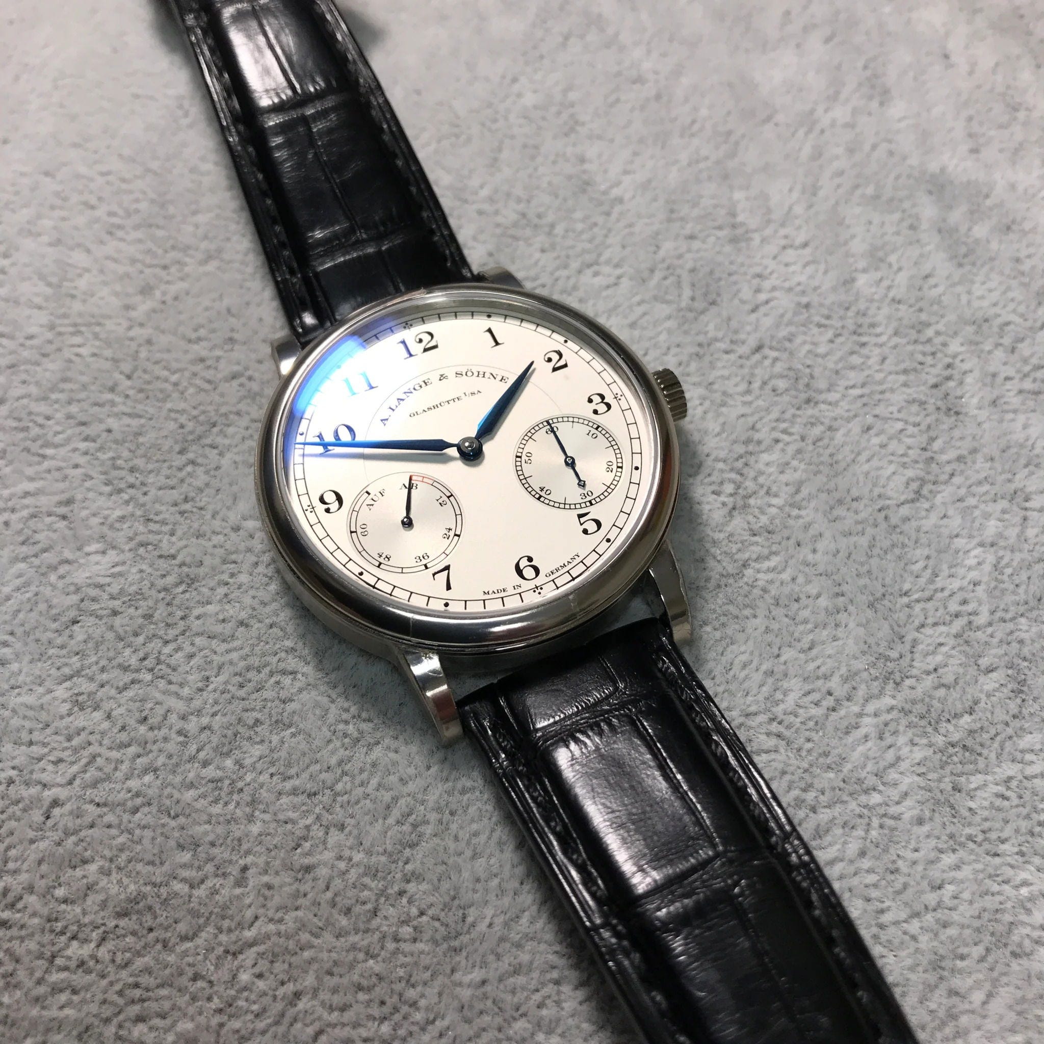 Your example checks the right boxes: box, papers, excellent dial and movement condition, and only minor wear on the case and strap. That puts it squarely in the “collector-grade wearable” category—not a safe queen, but close enough to satisfy most buyers looking for a clean Lange without paying boutique prices.