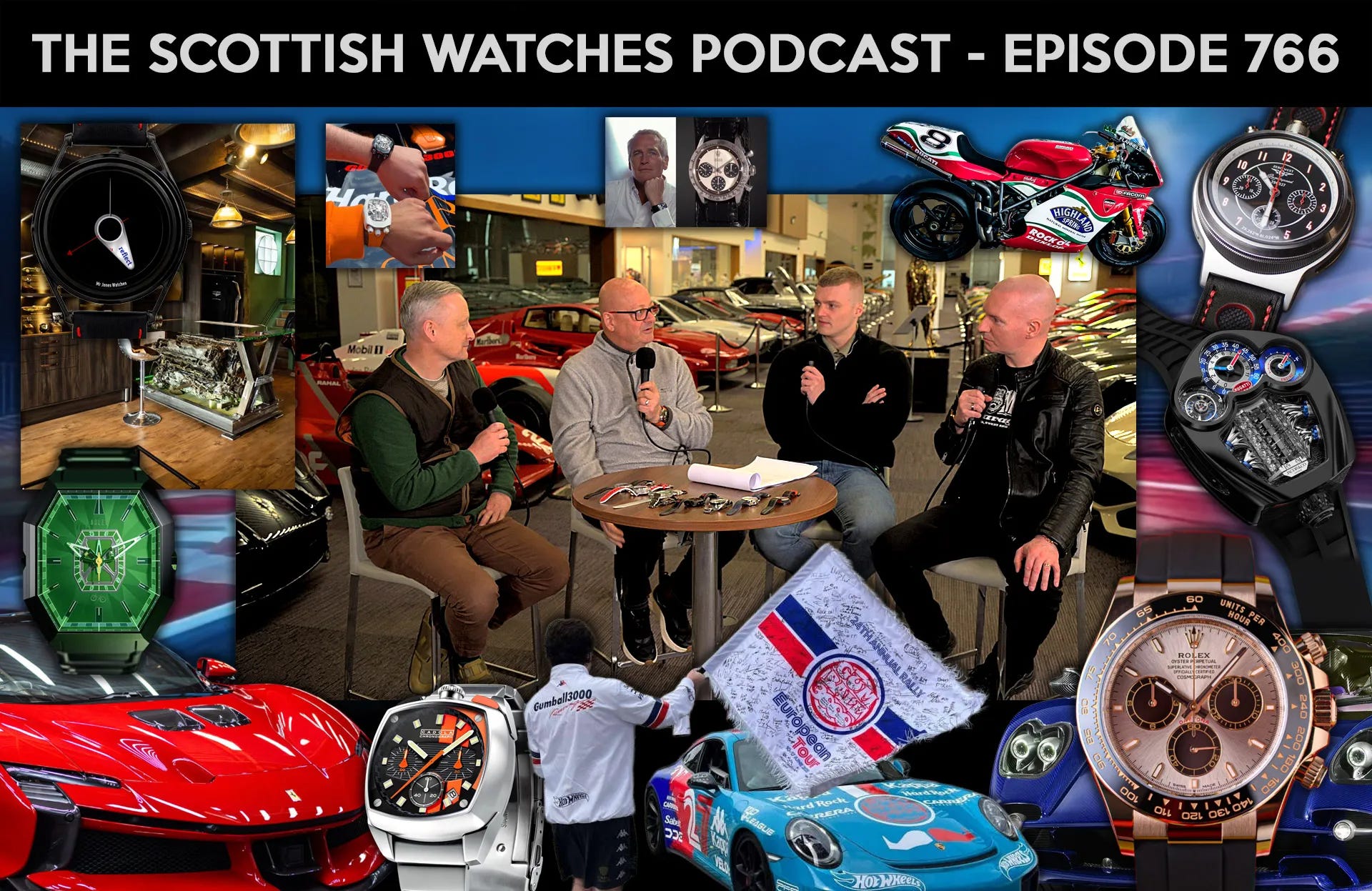 This episode of the Scottish Watches Podcast (#766) is recorded at The Moulsdale Foundation in Glasgow, using the setting of an automotive museum to frame a conversation about watches that spark real enthusiasm. The hosts (Jez and Dave Neal), joined by car expert Ted, discuss a range of watches from brands like Rolex, Tudor, and Breitling while connecting them to the broader culture of cars and motorsports. They also share personal pieces from their own collections, using them as jumping-off points to talk design, function, and why certain watches feel especially exciting. The result is a fast-moving, enthusiast-focused episode that leans into the overlap between horology and automotive passion.