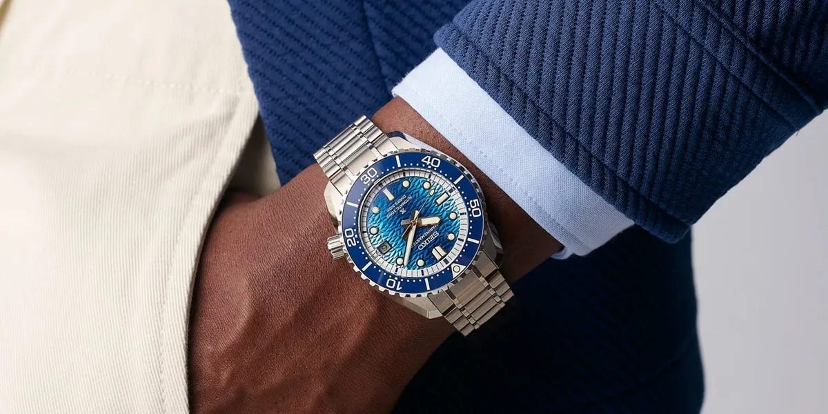 This comparison rounds up six standout blue-dial releases from 2026, showing how the color can work across both tool watches and dressier pieces. It ranges from robust, water-ready options like Seiko’s Prospex Marinemaster 1968 Heritage to more affordable, vintage-leaning chronograph styling from Timex. The list also highlights variety within “blue,” including Citizen’s turquoise-leaning Promaster Dive and higher-end picks like Breitling’s Navitimer B19 with a perpetual calendar. Overall, it frames blue dials as one of the most versatile trends of the year, spanning multiple price tiers and use cases.