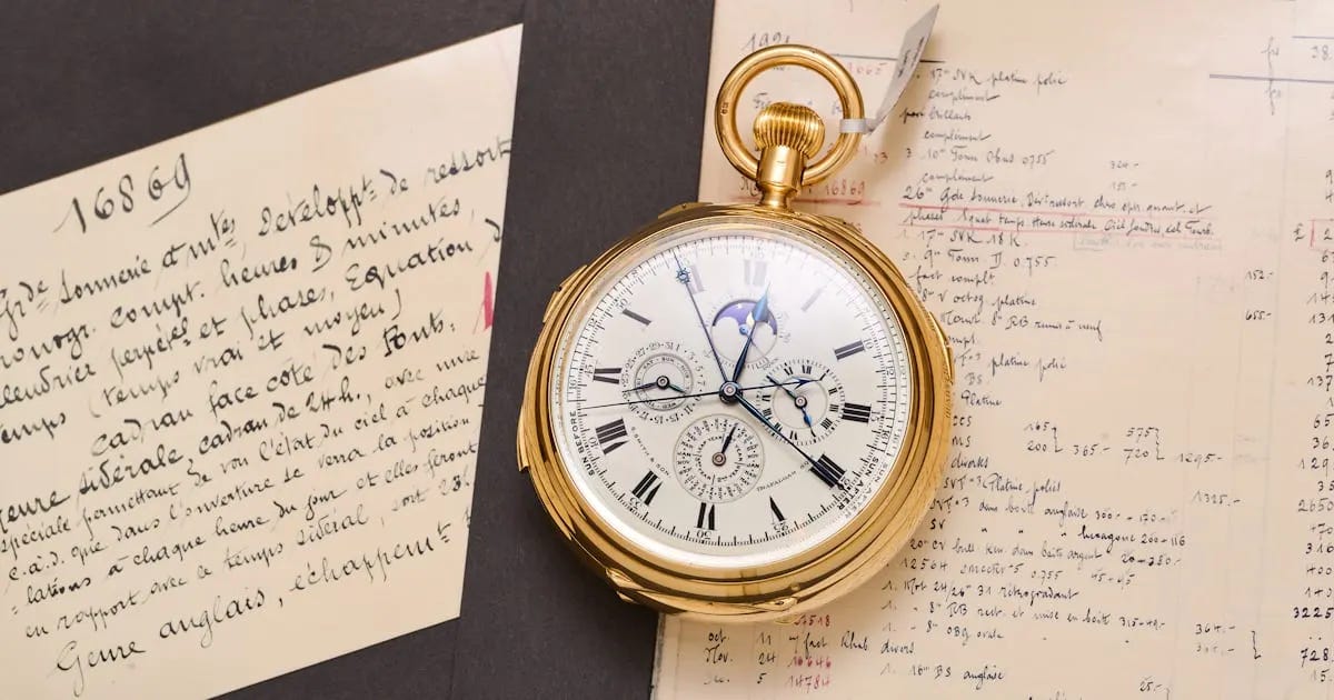 Audemars Piguet’s “Grosse Pièce,” long considered the most complicated pocket watch in private hands, heads to Sotheby’s on December 8 with an estimate of $500,000 to $1,000,000. Built over seven years beginning in 1914, the watch integrates 19 complications including a tourbillon and sky chart. Commissioned through S. Smith & Sons for a prominent client, it reflects the collaborative work of master watchmakers and AP’s early technical ambition. The sale is expected to draw major collectors and further elevate the watch’s historical stature.