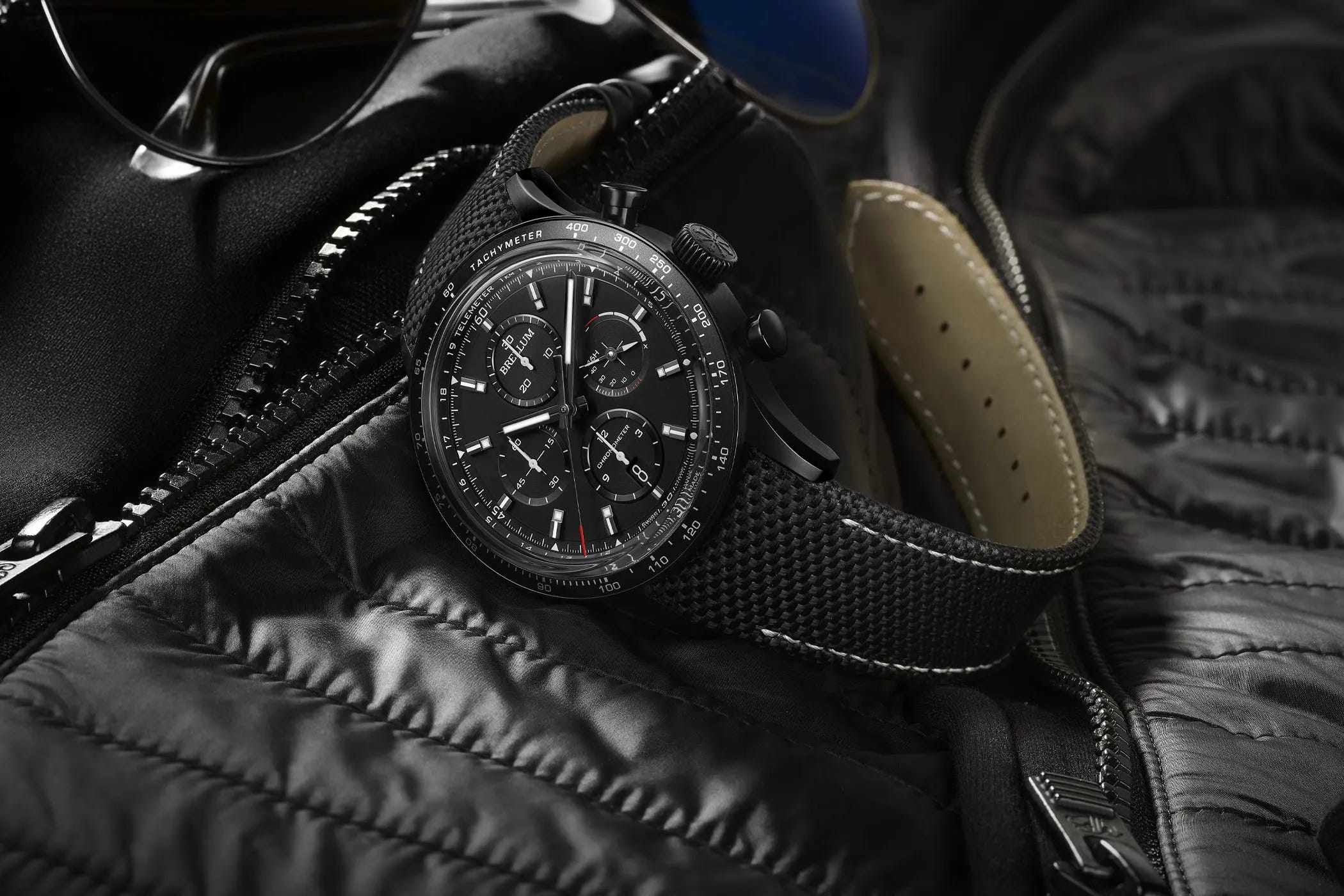 Brellum’s limited edition Pandial Power Reserve is crafted in Grade 5 titanium with black DLC, delivering a robust 43 mm chronograph that remains light on the wrist. A multi-level black dial with polished, lume-filled indexes frames four subdials, a power-reserve indicator, discreet date, and a tachymeter bezel. Inside is the COSC-certified BR-750RM (Valjoux 7750 base) running at 28,800 vph with 46 hours of power reserve. Price: CHF 3,235 including VAT, or CHF 2,990 excluding taxes.
