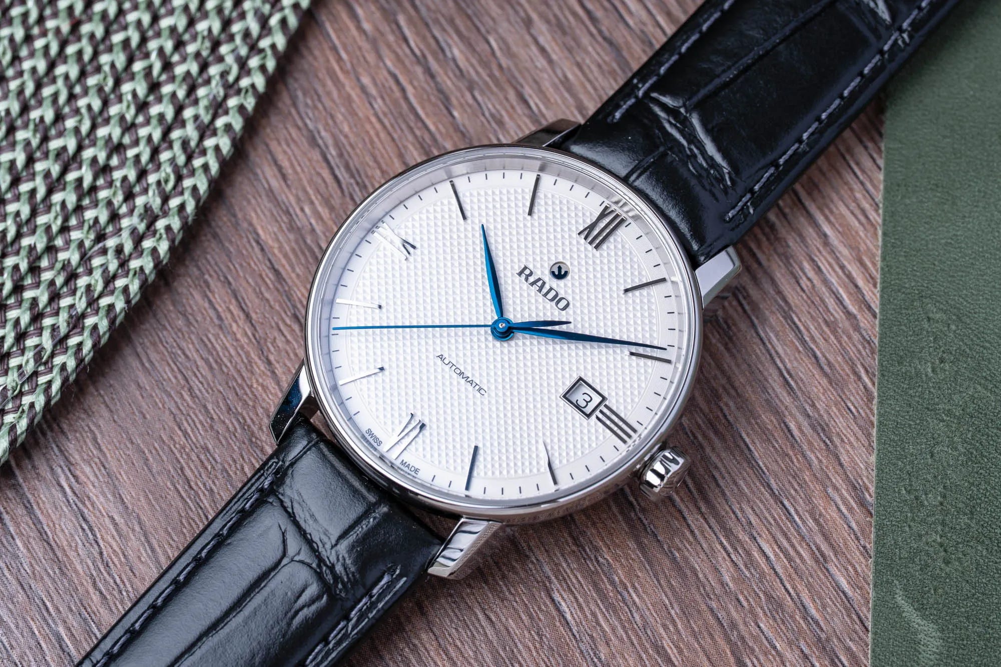 A compact 37.7 mm dress watch with a clean silvery dial, blue hands, and polished indices introduces an accessible entry to Swiss elegance. The R763 (ETA C07.611) serves up an impressive 80‑hour reserve, though the strap can feel stiff. While it lacks Rado’s signature ceramic character, it’s a capable gateway piece at $1,300 USD. Newcomers will appreciate the comfort, clarity, and long-running movement.