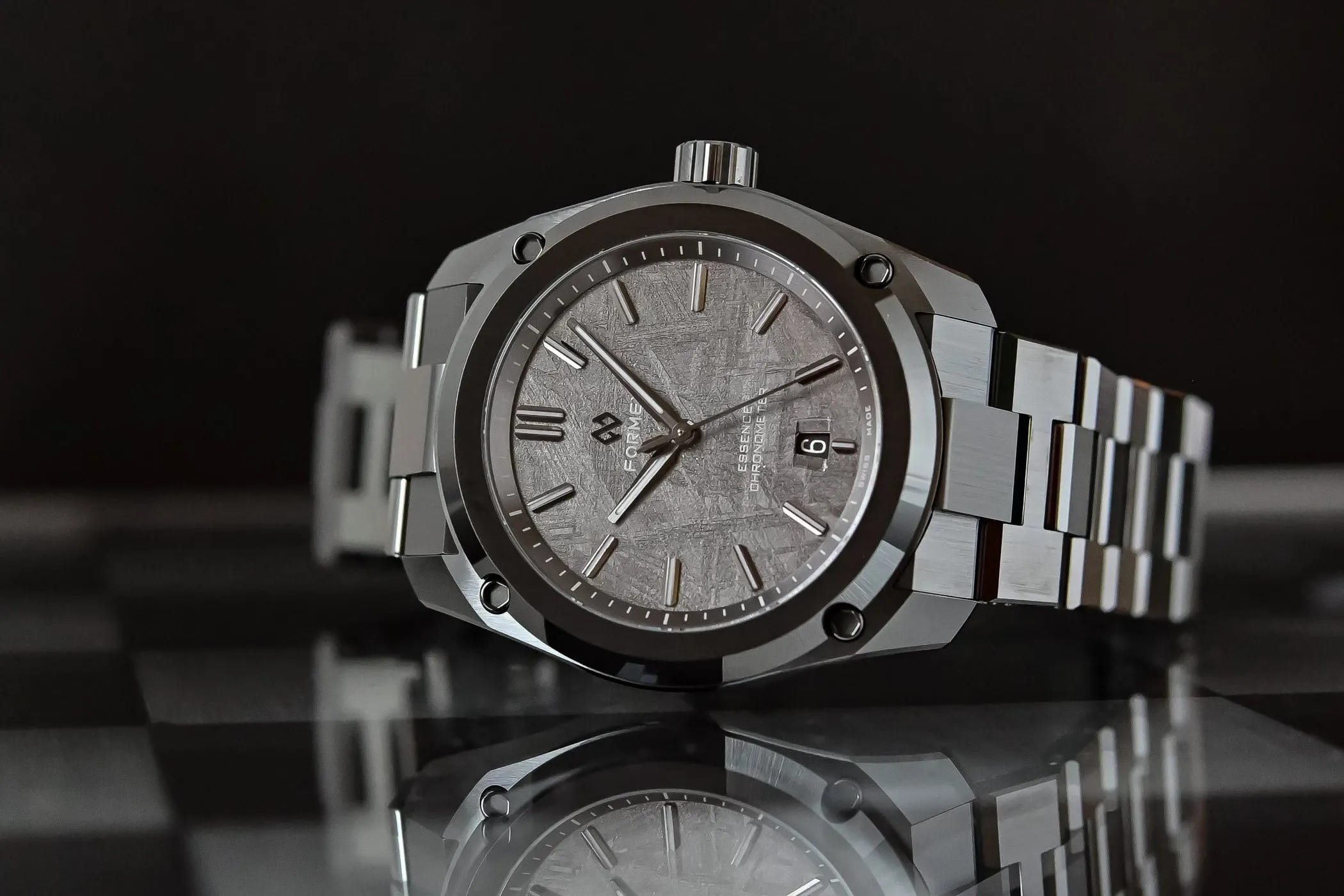 Formex celebrates its 25th anniversary with a full‑ceramic Essence featuring a Muonionalusta meteorite dial whose dark‑nickel treatment sharpens the Widmanstätten pattern. The 41mm case includes the brand’s Case Suspension System, a screw‑down crown, and a lightweight, scratch‑resistant build on a ceramic bracelet with a micro‑adjust clasp. Inside is the COSC‑certified Soprod Newton P092 automatic with a 44‑hour power reserve. Limited to 100 pieces per year and shipping mid‑January 2026. Price: CHF 4,150, EUR 4,590, or USD 4,920.