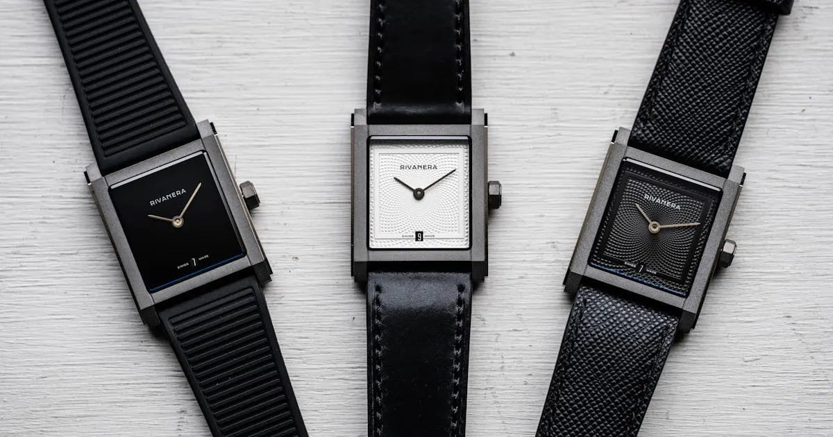 Rivanera Piccolo refines size and proportion with a Grade 5 titanium case measuring 26 mm wide and 33 mm lug‑to‑lug for a more conventional fit. Sandblasted, angular surfaces in dark anthracite meet dials in Grain de Riz guilloché or Musou Black for dramatic contrast. The Sellita SW1000 automatic provides a 46‑hour power reserve and comfortable, versatile wear. Priced to compete among microbrands, it offers a distinctive alternative to traditional round dress watches.