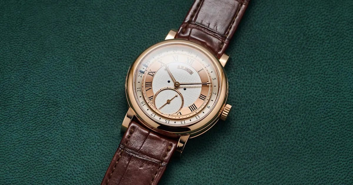 The new Series 6 distills classic British watchmaking into a pared‑back, highly functional design featuring a “travelling date window.” Its bleached silver dial and hand‑executed guilloché emphasize elegance and legibility, while the updated single‑wheel co‑axial escapement improves efficiency. Six years in the making, the watch balances heritage techniques with thoughtful innovation. Price: approximately £320,000.