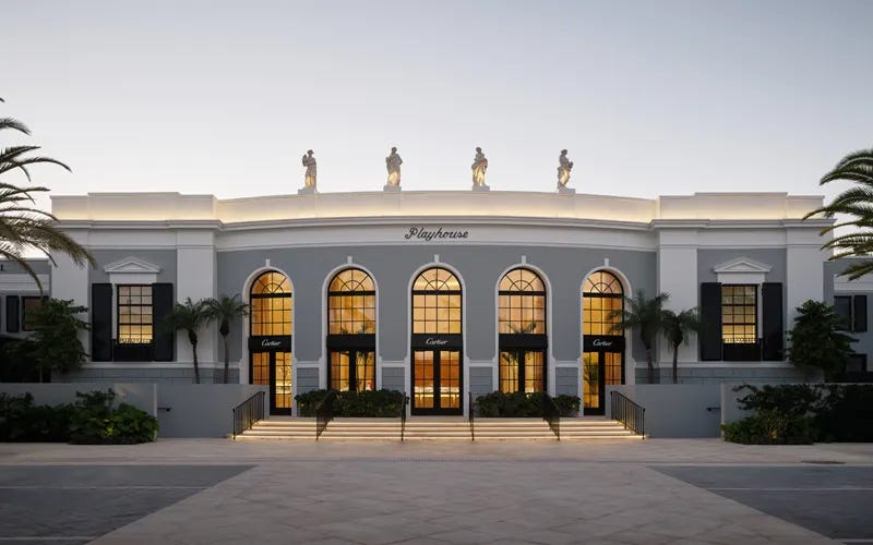 Cartier has opened a new Palm Beach boutique inside the historic Royal Poinciana Playhouse, continuing expansion into affluent destinations. The space showcases Swiss watches and high jewelry, echoing the site’s 1958 architecture with Regency details, classical friezes, and hand‑painted local flora. Floor‑to‑ceiling ombré curtains, water views, and Murano glass seashell lighting create a luminous, coastal ambiance. The opening underscores Cartier’s investment in immersive luxury environments aimed at an upscale, high‑profile clientele.