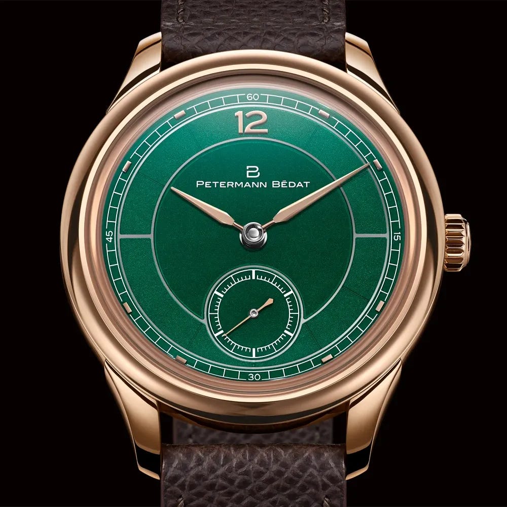 The Reference 1825 showcases Haute Horlogerie at its finest, with a translucent green Grand Feu dial, classical proportions, and details inspired by vintage pocket watches. A 38 mm by 10.15 mm case houses the hand‑wound calibre 233 featuring a 56‑hour reserve, variable‑inertia balance, and meticulous finishing in German silver with solid gold gears. Ergonomics and refinement meet long‑term durability in this limited‑production piece. Priced at CHF 75,000 excluding VAT, it’s a coveted expression of art and engineering.