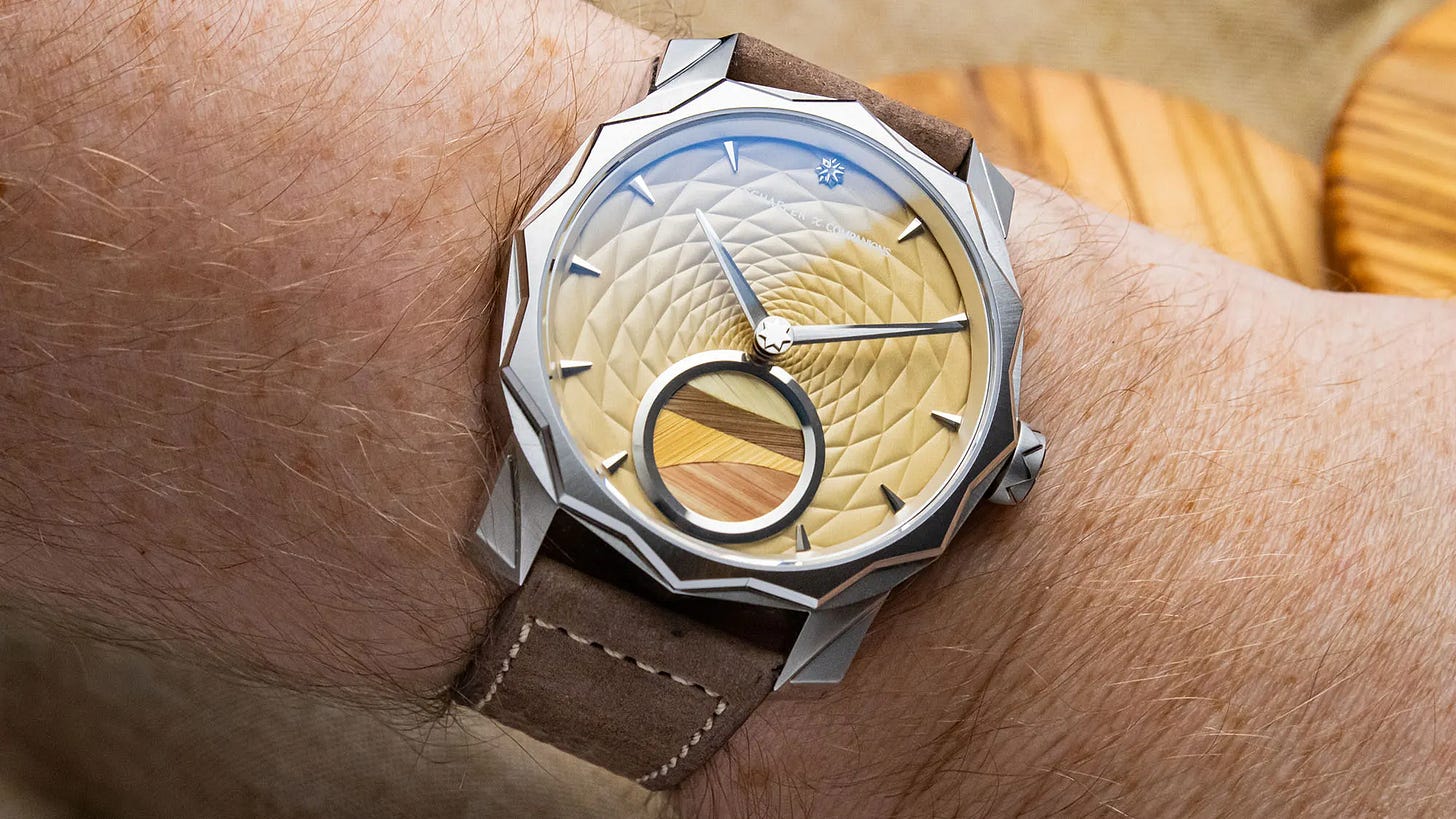 On the creative side, collaboration and resilience were the themes of the day. The Schaefer & Companions Solune Dune watches leaned hard into art and texture with straw marquetry and desert-inspired tones, while Orion founder Nick Harris shared a candid, grounding story about building a brand through illness, fire, and recalibrated priorities—an honest reminder that watchmaking is still, at its core, human.