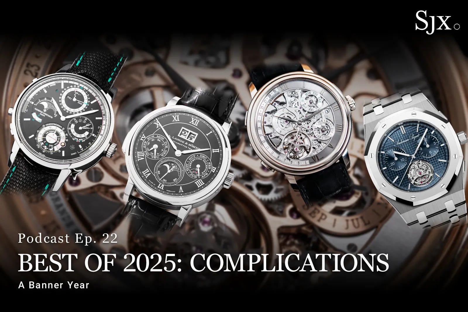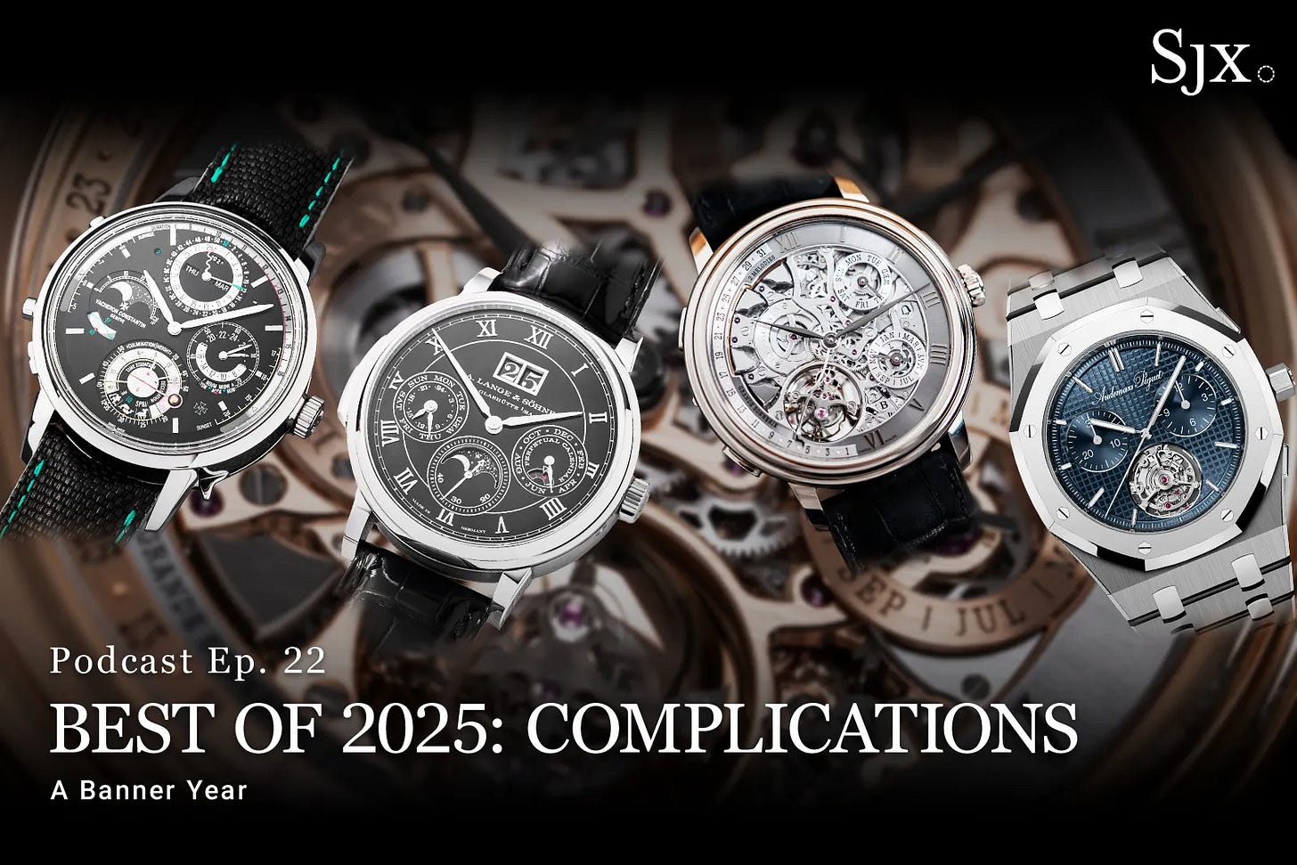 Episode 22 of the SJX Podcast reviews the notable complicated watches from 2025, highlighting major releases from brands like Vacheron Constantin, Audemars Piguet, Lange, Blancpain, and Chopard. Key highlights include Lange's black enamel minute repeater perpetual calendar, Blancpain's Grande Double Sonnerie, and Audemars Piguet's RD#5 perpetual calendar, marking significant anniversaries and innovative designs in the watch industry.