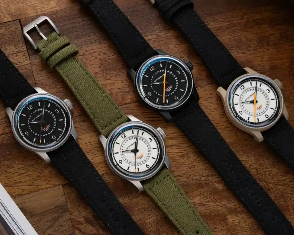 Astor and Banks has launched the Terra Scout, an automatic field watch that diverges from traditional military designs while maintaining functionality, featuring unique design elements like blunted dauphine hands, a hybrid dial construction, and an integrated date indicator. The watch is available in four references with sandblasted and coated steel cases, equipped with Super-LumiNova for visibility and a La Joux-Perret G100 automatic movement that boasts a 68-hour power reserve. Currently available at a launch price of $875 for three of the references, with the limited edition Desert Sand model offered at $975. This release signifies a confident evolution for the brand, showcasing thoughtful design and innovation.