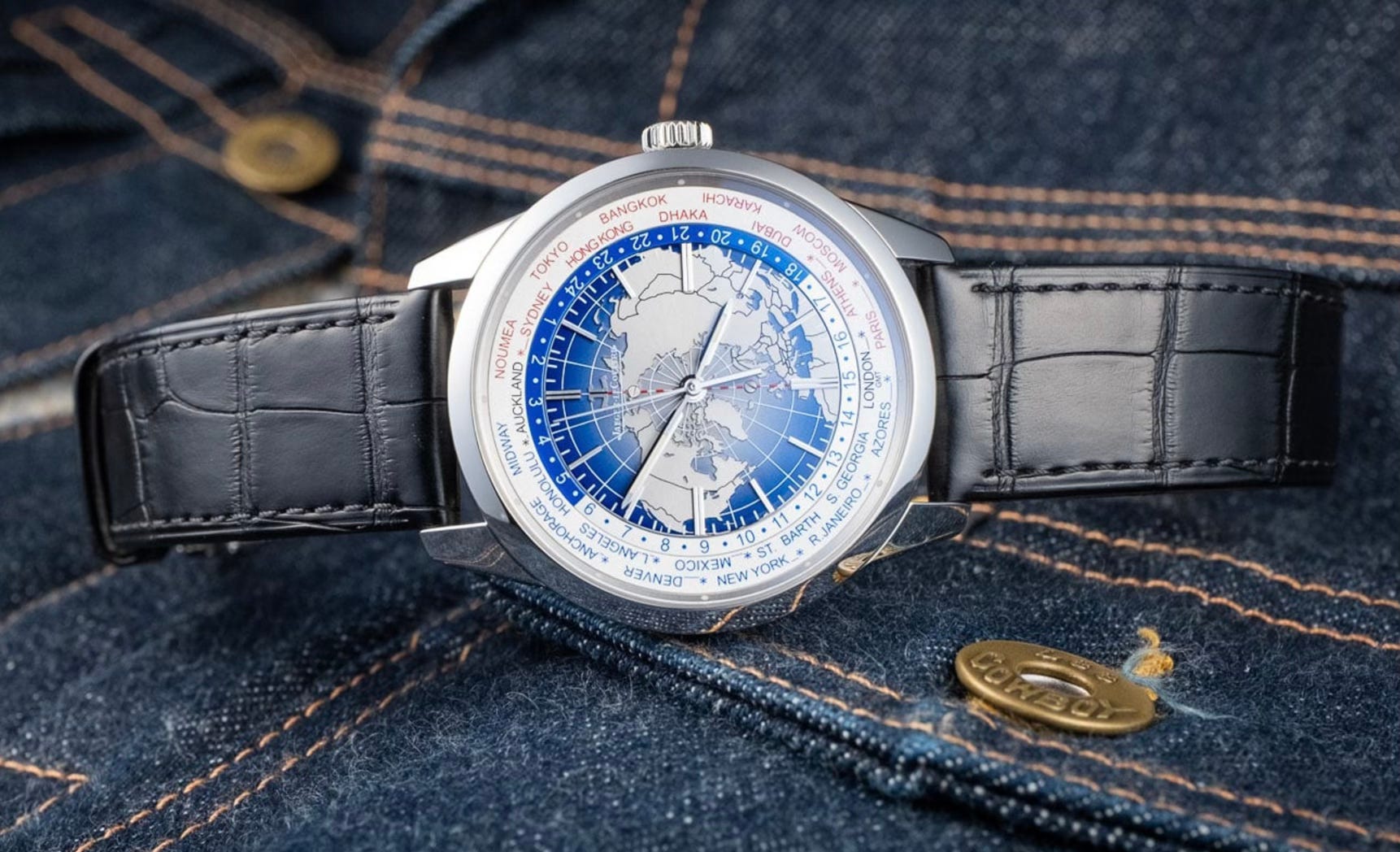 In 2015, a drive from Amsterdam to Brussels led to a fascination with the Jaeger-LeCoultre Geophysic Universal Time, a watch that combines elegance with practicality through its world-map dial and unique deadbeat seconds feature. Although initially deterred by its price, the watch’s sophisticated movement and aesthetic appeal lingered in memory, and after its discontinuation, the opportunity to purchase this timepiece arose. The Geophysic Universal Time stands out not only for its aesthetic qualities but also for its impressive functionality, including the ability to display 24 time zones simultaneously. With its high-quality movement and meticulous finishing, this timepiece has become a cherished addition to the collection, promising to be a reliable companion through future adventures.