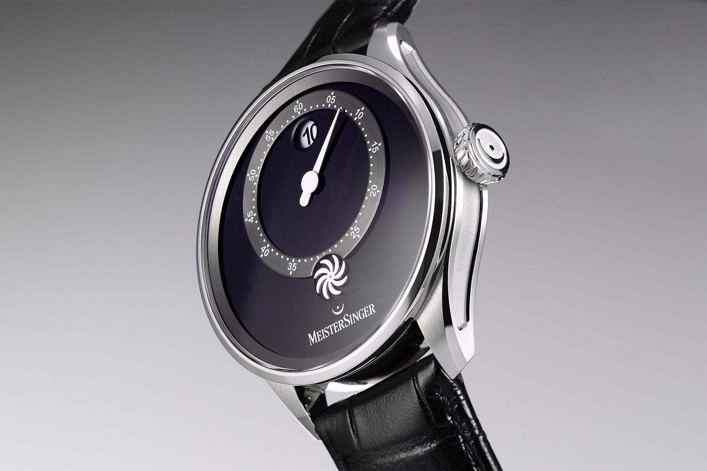 MeisterSinger marks its 25th anniversary with the Panthero Jumping Hour, introducing a new 40.5mm case and a dial layout built around a jumping-hour aperture at 12 o’clock and an off-centered minutes display. A rotating “sun wheel” adds a distinctive visual flourish, emphasizing the collection’s design-forward intent even if it is not functional. The watch is powered by the MS-JH-01 (Sellita SW300-based) with a proprietary jumping-hour module developed with Dubois-Depraz, visible through a sapphire caseback. Prices start at about $8,237 (converted from EUR 6,990) and rise to about $9,415 (converted from EUR 7,990) for the limited edition.