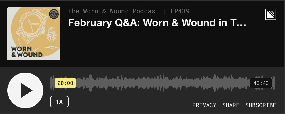 This February Q&A episode brings together Zach Kazan with Zach Weiss and Blake Malin to answer a broad mix of listener questions with a mix of industry talk and lighter banter. They touch on how AI is showing up in their work, how they react when a watch review falls flat, and what they think Worn & Wound could look like a decade from now. The conversation also gets personal and playful, including a debate over hot dog toppings, keeping the episode casual and approachable. The hosts encourage listeners to subscribe on major podcast platforms, leave reviews, and send in questions for future episodes.