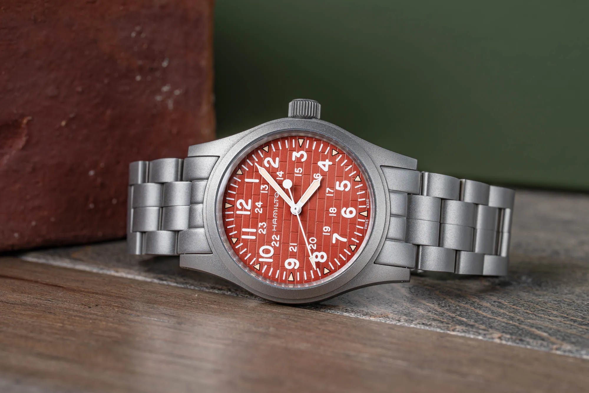 Hamilton’s Khaki Field Mechanical 38mm Lancaster Exclusive Edition leans into the brand’s Pennsylvania roots, using a red brick-toned dial as a subtle nod to Lancaster’s local architecture. The watch stays true to the utilitarian Khaki Field spirit with a stainless steel case, 50m water resistance, and two NATO straps included. Inside is the H-50 hand-wound movement, delivering an 80-hour power reserve that makes it especially practical for a daily-wear field watch. It is priced at $745 and is only available through the Hamilton boutique in Lancaster, reinforcing the “destination purchase” nature of the release.