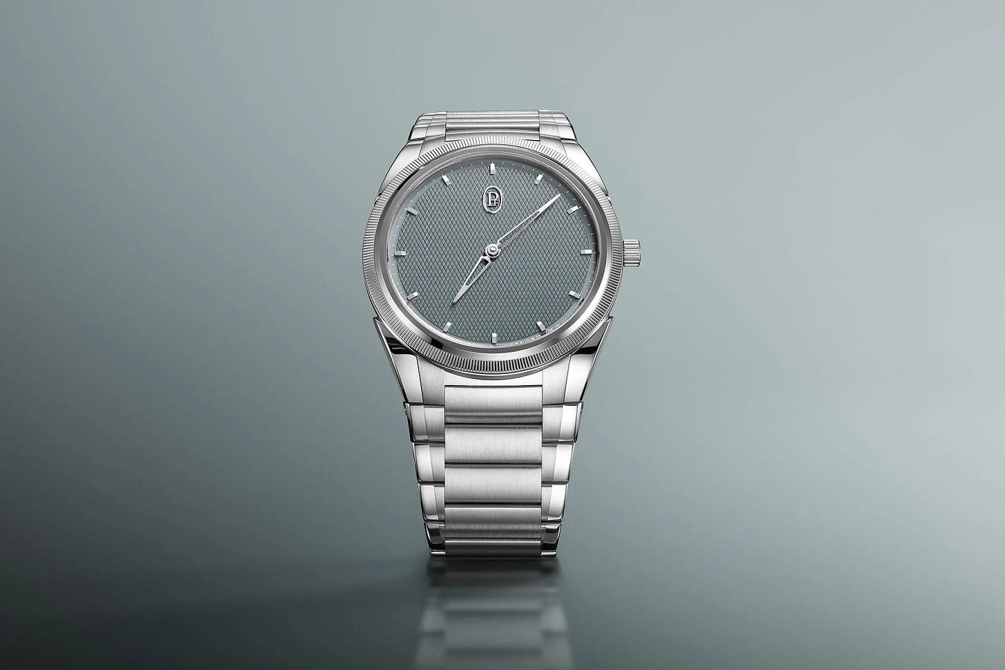 The Quai des Bergues line is one of the cleanest expressions of what modern Czapek does well: classical architecture with deliberately artisanal details, but packaged in a watch that still wears like a contemporary daily piece. The “Blue Aurora” variant traces back to the brand’s small run of Aurora-themed Quai des Bergues models—limited to 10 pieces per colorway—with a distinctive hand-guilloché “Eaux-Vives” pattern dial and a 42.5mm steel case. This isn’t a mass-produced stamped texture; it’s the sort of dial treatment that looks alive under changing light, and that’s the whole point of chasing something like this instead of a more common production alternative.