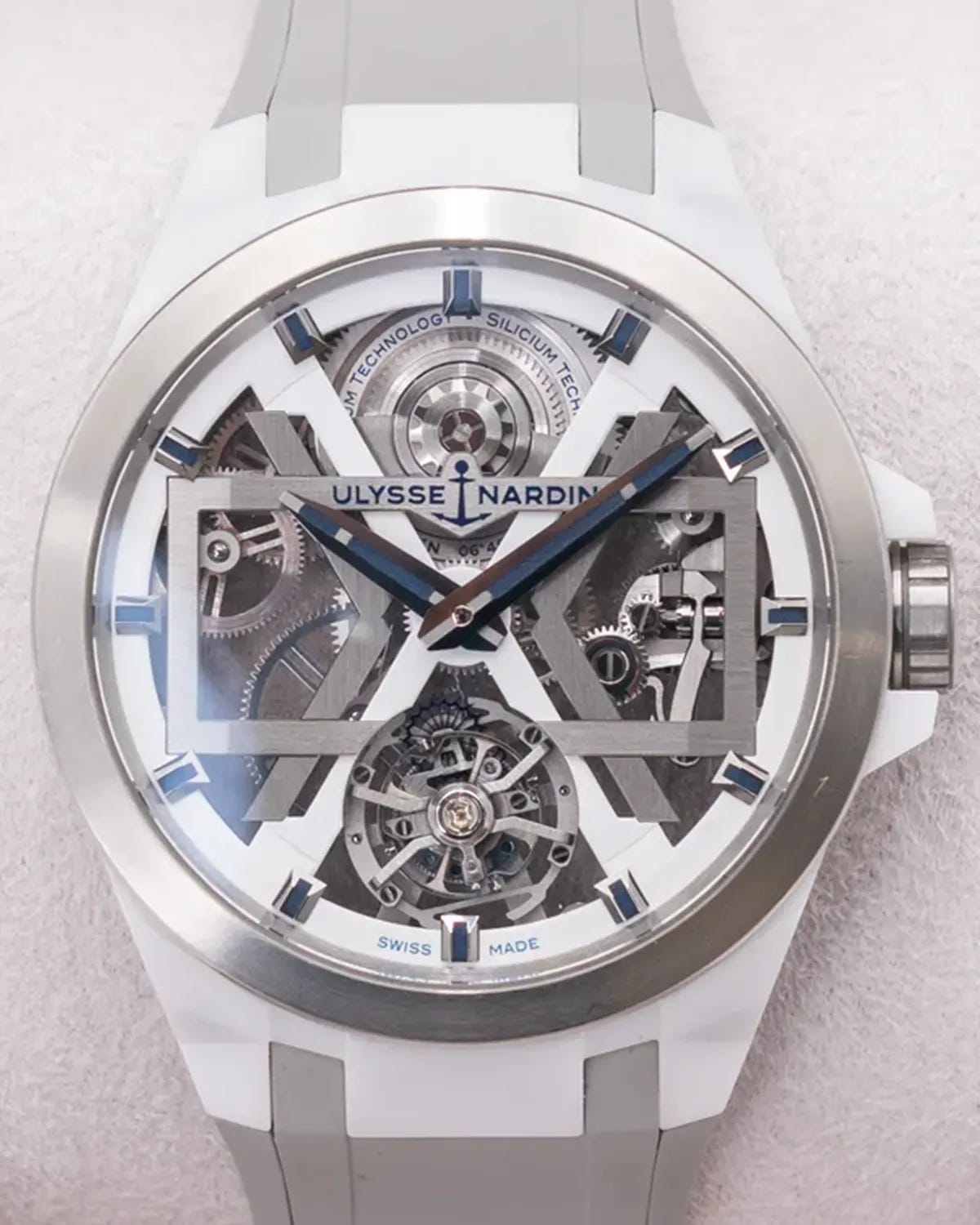 A little history is useful here, because the Blast wasn’t just another skeletonized remix—it was a clean-sheet, Geneva Watch Days-era declaration from Ulysse Nardin in 2020, built around a new movement and a new case language. Hodinkee’s launch coverage pegged the White Blast (T-1723-400/00) at a $46,000 MSRP when it debuted, with production constrained to roughly no more than 100 pieces per reference per year. That limited-throughput reality is part of why these are not especially common in the wild, even if they are not formally “limited editions.”