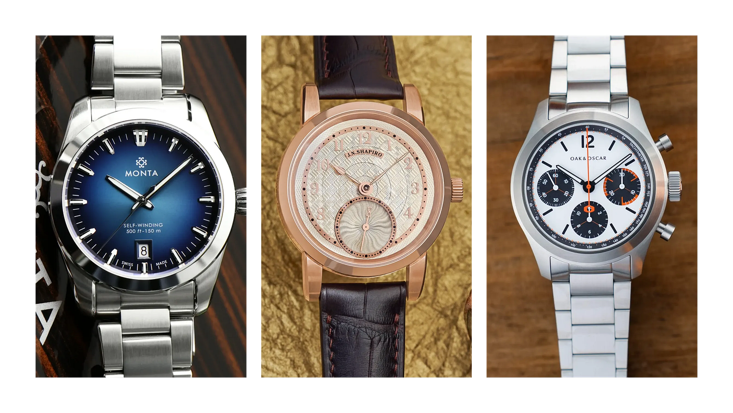 This piece charts the resurgence of American watchmaking across a wide price and prestige spectrum. It starts with accessible makers like Brew, Bulova, Monta, Oak & Oscar, Lorca, and Weiss, highlighting retro charm, travel-ready designs, and adventure-focused everyday watches. It then moves to more rarefied names such as RGM and Devon, which preserve traditional craft or pioneer unconventional tech like time-belt displays. At the very top, artisans like Keaton P. Myrick and J.N. Shapiro represent the pinnacle of U.S. independents, producing handmade pieces with intricate guilloché and in-house movements that put American horology back on the global map.
