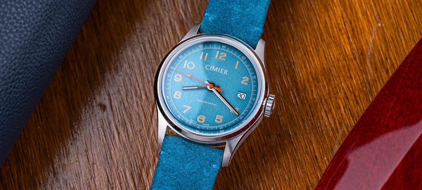 The Cimier 47° North is a 38mm, 11.25mm‑thick field watch designed to hit the modern sweet spot for size while remaining robust with 100m water resistance. Its dial is clean and versatile, offered in blue and other colors with ample lume for legibility, and the case finishing mixes brushing and polished accents to keep things visually refined. While the stock strap is on the thicker side, it can be easily swapped, and the watch’s proportions suit both casual and slightly dressier contexts. Powered by the ETA 2824‑2 with a 38‑hour power reserve, it comes in around CHF 850, making it an appealing option for someone wanting a colorful, go‑anywhere field watch with solid specs.