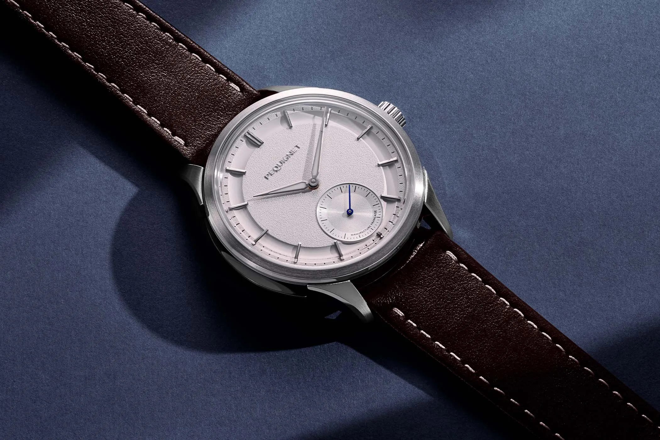 Pequignet’s Royale Paris Manual 39.5mm distills the collection into a time‑only hand‑wound watch with a steel case measuring 39.5mm by 11.5mm, combining polished and satin surfaces, a domed AR‑coated sapphire crystal, and an exhibition back. The opaline white dial is clean and balanced, with a snailed small‑seconds subdial, polished hands filled with Super‑LumiNova, and a blue seconds hand providing the only splash of color. Inside, the in‑house Calibre Royal Manuel delivers a 21,600 vph rate and an impressive 100‑hour power reserve, underscoring the movement‑focused concept. The watch is priced at €3,900, approximately $4,300 USD, and will join the permanent collection starting February 2026.