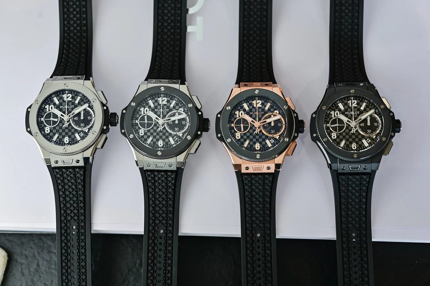 The Big Bang Original Unico Collection revisits Hublot’s icon with 43mm multi‑layered cases in materials like Titanium, Black Magic ceramic, and King Gold Ceramic. Updated dials feature a two‑tone chequered motif, openworked date, running seconds, and a 60‑minute chronograph register. Inside, the in‑house Unico flyback chronograph offers a 72‑hour power reserve and pairs with the One‑Click strap system for easy customization. Prices range from CHF 16,900 to CHF 32,900, approximately $19,400–$37,800 USD.