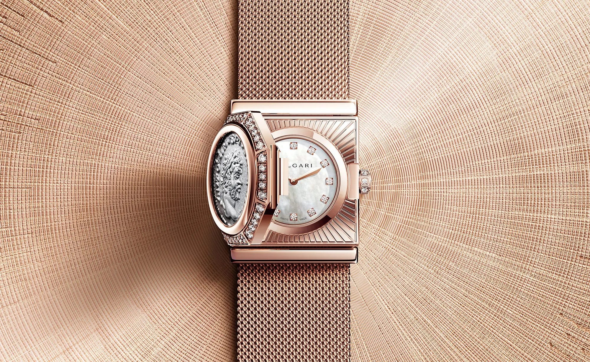 Bulgari’s Maglia Milanese Monete Secret Watch combines a woven gold Milanese mesh bracelet with an authentic ancient Roman coin that flips open to reveal a diamond-accented mother-of-pearl dial. The watch is powered by Bulgari’s tiny Piccolissimo BVP 100 calibre, packing serious mechanical watchmaking into an elegant, jewelry-first design. Its rose gold case and diamond-set octagonal bezel emphasize Bulgari’s high-jewelry heritage as much as its horological chops. The watch is priced at EUR 157,000, which is approximately $184,000 USD at current exchange rates.