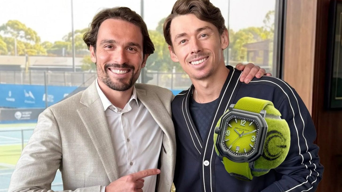 Australian tennis star Alex De Minaur, currently ranked No. 6 in the world, has entered into a new partnership with independent watchmaker Gerald Charles ahead of the 2026 Australian Open. De Minaur chose the brand for its emphasis on performance, precision, and independence, positioning himself away from large luxury group-owned manufacturers. On court, he will wear the Maestro GC Sport Tennis in Yellow, a super-light model inspired by tennis balls and designed for professional athletes. Both De Minaur and Gerald Charles’ CEO Federico Ziviani highlight the player’s genuine passion for fine watchmaking as central to the collaboration.