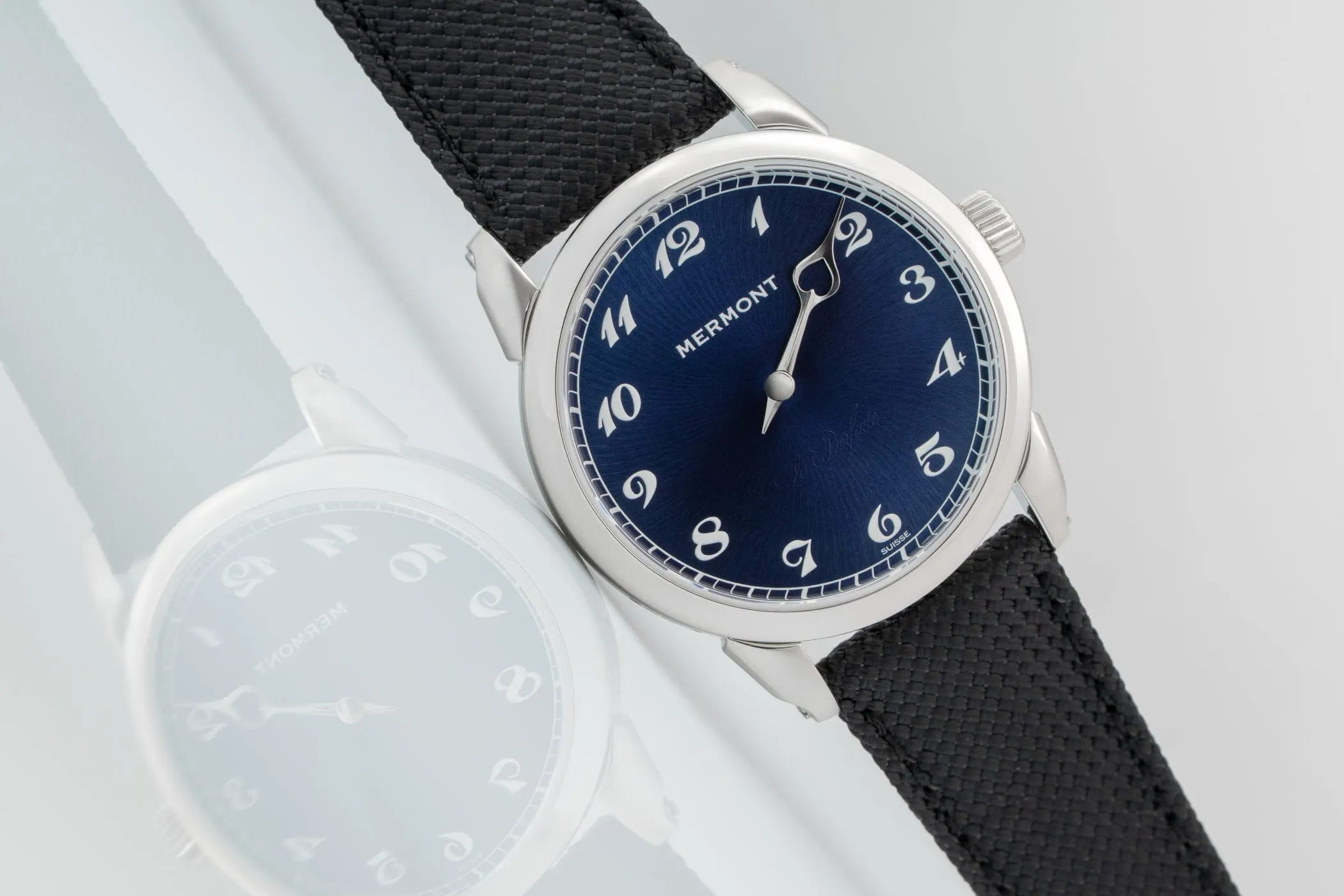 Mermont enters the independent scene with La Parfaite, a 38mm platinum, single-hand watch designed to encourage a slower reading of time. The case is 9.2mm thick with a mix of brushed and polished finishes, cowhorn-style lugs, and a concave bezel framing a deep blue sunburst dial with Breguet numerals. Its steel, heart-shaped hand is driven by the La Joux‑Perret D101 movement, offering a 50-hour power reserve and regulation to around +/- 3 seconds per day. Limited to 28 pieces and priced at CHF 10,998 (about $14,160 USD) before VAT, it’s positioned as a highly exclusive debut for serious collectors.