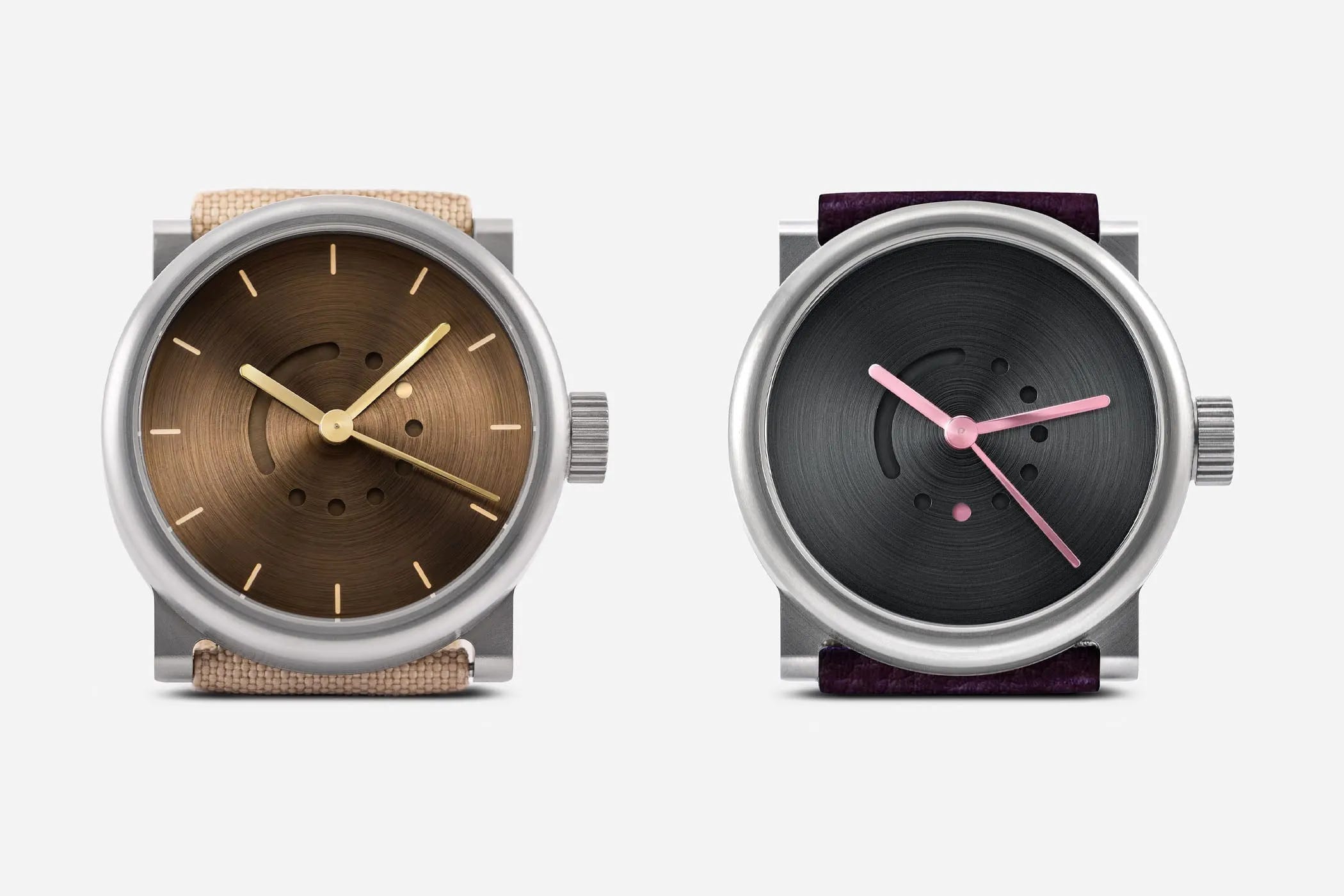 The Ochs und Junior Settimana PVD celebrates 20 years of Ludwig Oechslin’s minimalist weekday complication, which uses seven apertures and a rotating dot instead of traditional day text. The new 36mm titanium models for 2026 introduce PVD-coated brown and black dials, each accented with bold color contrasts (pink hands on black, gold accents on brown) that keep the design playful yet restrained. A simple, two-part grade 5 titanium case houses an automatic movement with a weekday module built from just four extra components, embodying Oechslin’s “radical simplicity” philosophy. Priced at CHF 2,486 including Swiss VAT—roughly $3,200 USD—they are made to order with about an eight-week delivery window.