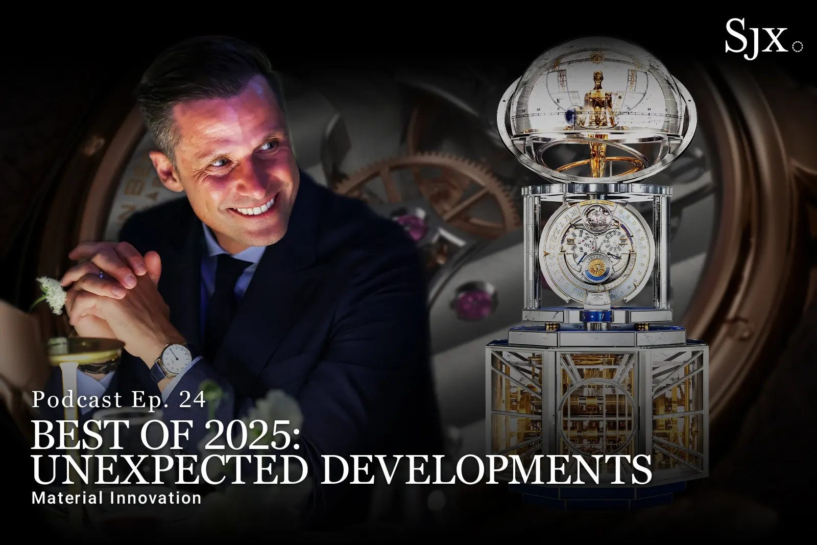 This episode of the SJX Podcast looks back at 2025’s most unexpected developments in watchmaking, from Rolex’s Land-Dweller with its new Dynapulse escapement to Breguet’s experimental magnetic constant-force mechanism. The discussion also covers TAG Heuer’s progress in industrializing carbon hairsprings, signaling how materials science is reshaping mainstream calibers. Vacheron Constantin’s monumental 150 kg astronomical clock, created for its 270th anniversary and exhibited at the Louvre alongside a companion wristwatch, rounds out the year’s highlights. The episode closes as a thank-you to listeners and a reflection on how bold 2025 turned out to be for horology.