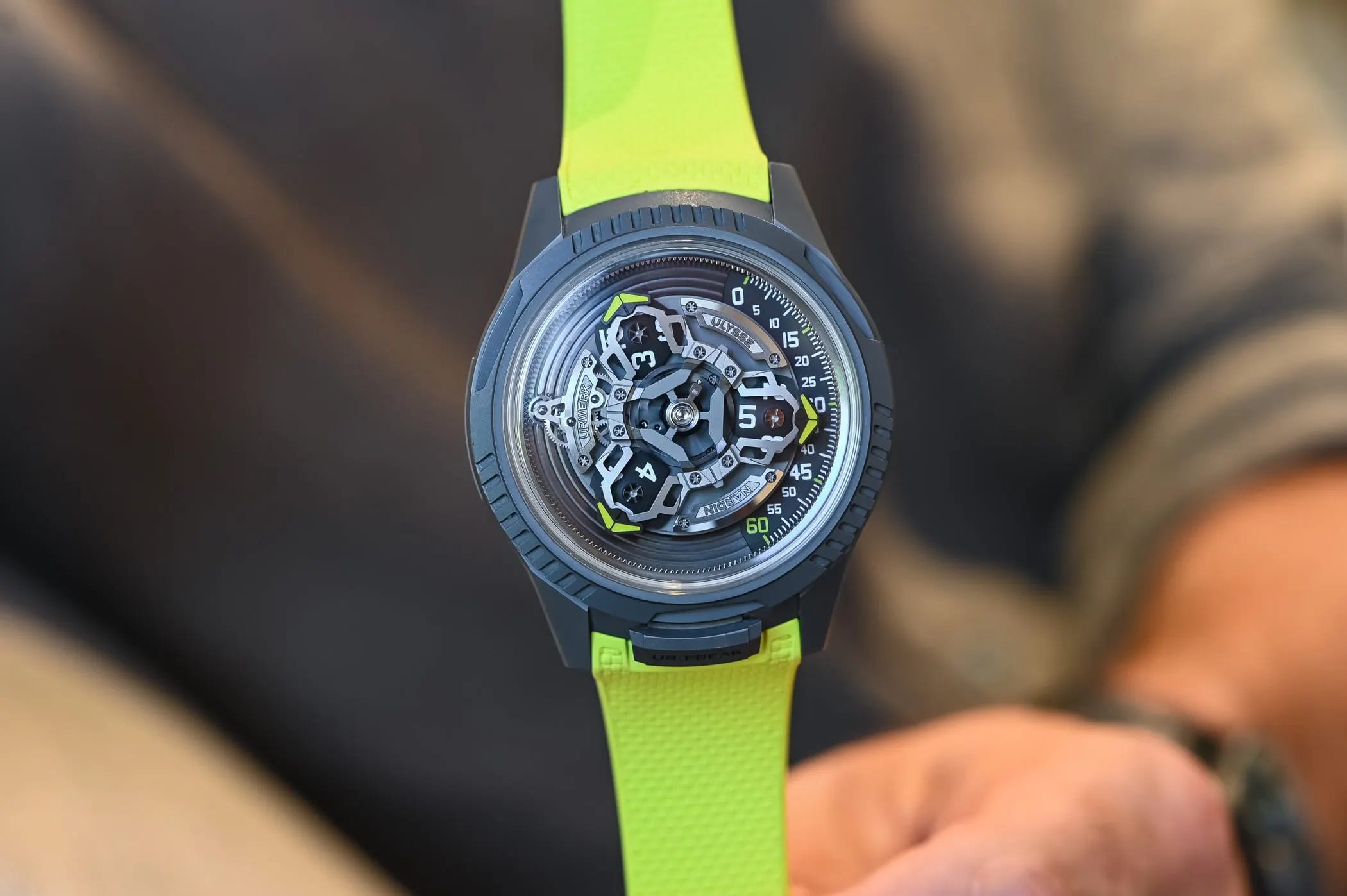 Independent watchmaking flourished in 2025, with creators using freedom from big-group constraints to push design and mechanics. David Candaux’s DC12 MaveriK showcased a double-balance wheel inside a sculpted titanium case, while Fam Al Hut’s Mark I Bi-Axis Tourbillon signaled the rise of high-end Chinese independents. Minimalist but exquisitely finished pieces like Luca Soprana’s Time Only and Petermann Bedat’s Reference 1825 showed how restraint can still feel special. Collaborations such as Urwerk and Ulysse Nardin’s UR-FREAK further proved that independents are setting the pace for daring ideas in modern horology.