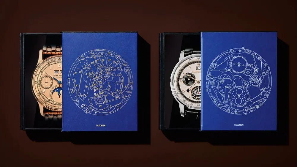 Taschen’s two-volume Ultimate Collector Watches project assembles 100 of the most important wristwatches into a sweeping visual and historical survey of haute horlogerie. Spanning from the 1890s through 2023, it pairs icons from Patek Philippe, Rolex, and Audemars Piguet with landmark creations from independents, each supported by rich photography and narrative context. Interviews, archival materials, and a foreword by Aurel Bacs give the set real authority and depth. Offered in a standard edition and a numbered collector’s edition, it is positioned as both reference work and coffee-table centerpiece for serious enthusiasts.