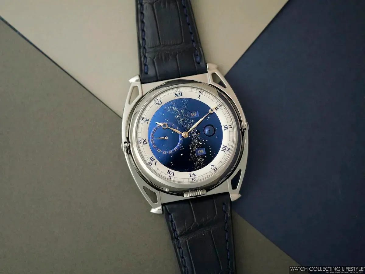 The Roger Smith Series Six is a highly limited handmade watch that showcases the pinnacle of British independent watchmaking. Built in tiny numbers on the Isle of Man, it introduces a “traveling date” indication that circles the dial, avoiding the visual disruption of a conventional date window. The 40mm 18k gold case, guilloché-engraved dial, and fully hand-finished movement highlight traditional techniques and the co-axial escapement that improves accuracy and service intervals. With extensive customization available and a retail price of £320,000 before taxes, it is positioned as a true collector’s piece rather than a mainstream luxury watch.