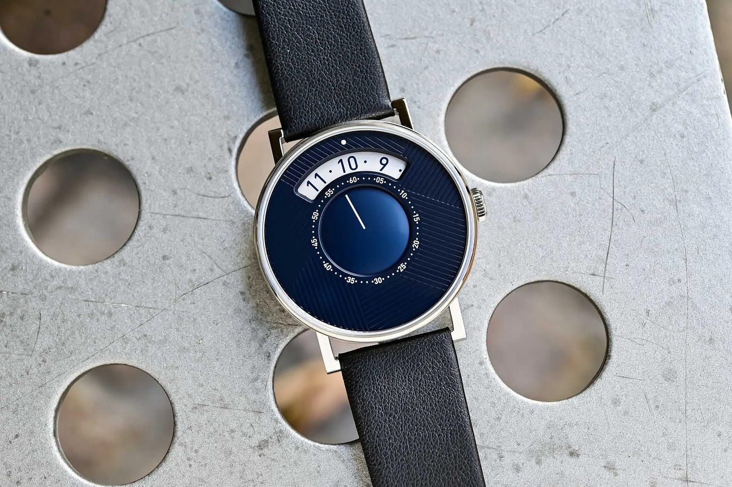 The MIH Gaïa Series III is a 39mm limited edition of 100 pieces that channels the architecture and spirit of La Chaux-de-Fonds’ Musée International d’Horlogerie. Its blue dial, created via Atomic Layer Deposition, uses a central rotating disc for the minutes and an arched aperture for the hours, echoing the museum’s concrete formwork lines. Powered by the Sellita SW400-1 with a 38-hour power reserve, it runs at 28,800 vph and is paired with a strap made from recycled apple waste to underscore its ethical, local focus. Priced at CHF 3,400 (about $4,220), proceeds support the museum’s renovation and exhibition program.