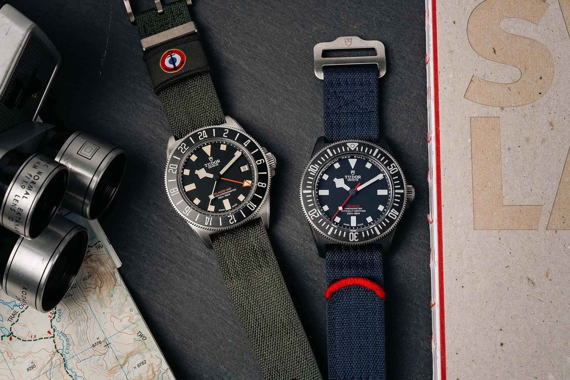The Sopwith Aero Marquis Tunisian Desert Limited Edition GMT is built from the cockpit armor of a World War II Focke-Wulf fighter, with just 53 pieces produced. Designed for extreme environments like the Sahara, it features a 41mm case, 200 meters of water resistance, magnetic protection, and a Hemlock Green dial framed by a bronze bezel. Inside is a 2893-A2 Élaboré automatic GMT movement, giving travelers a robust dual-time tool engineered to resist sand, shock, and harsh conditions. The watch ships on a handcrafted Horween leather strap in a vintage-style cedar box and is priced at $5,700.