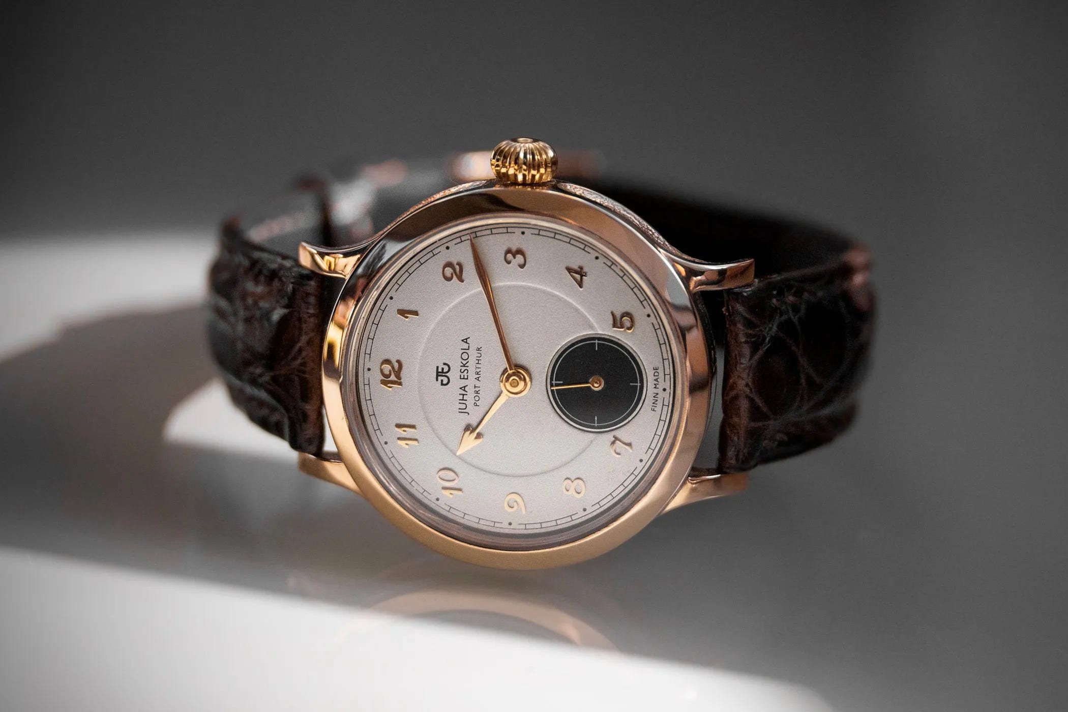 Juha Eskola is a Helsinki-based independent watchmaker creating small-run, highly personal watches that foreground craft, proportion, and aesthetic balance. His path into watchmaking started early, intensified after encountering an automatic watch, and ultimately led him through formal training at the Finnish School of Watchmaking. The piece highlights his debut N1—featuring a moonphase and a German-silver three-quarter plate bridge—as a statement of intent to build meaningful work under his own name. It also notes a collaborative working environment with other watchmakers and his ambition to keep developing new models while supporting future talent.