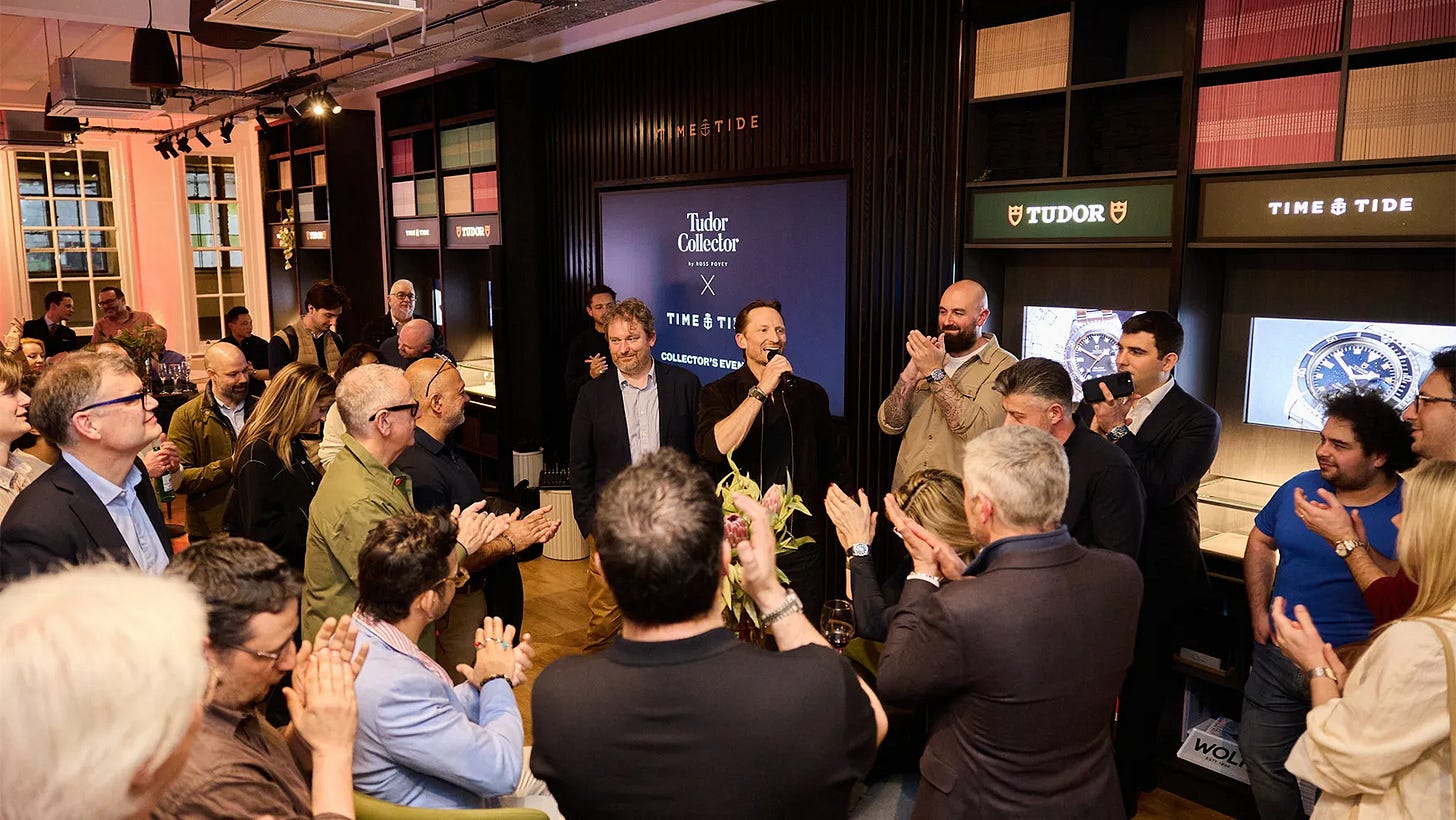 Time+Tide’s London Discovery Studio hosted a Tudor collectors’ night that turned the Tudor Library & Lounge into a community-led showcase, drawing roughly 115 attendees. Instead of a standard brand display, cabinets were filled with collectors’ own watches, creating an interactive mix of vintage and modern Tudor references side by side. The format encouraged storytelling and conversation as attendees compared pieces and swapped personal connections to the brand. The evening wrapped with a live podcast recording that captured the energy of a room built around enthusiast participation.