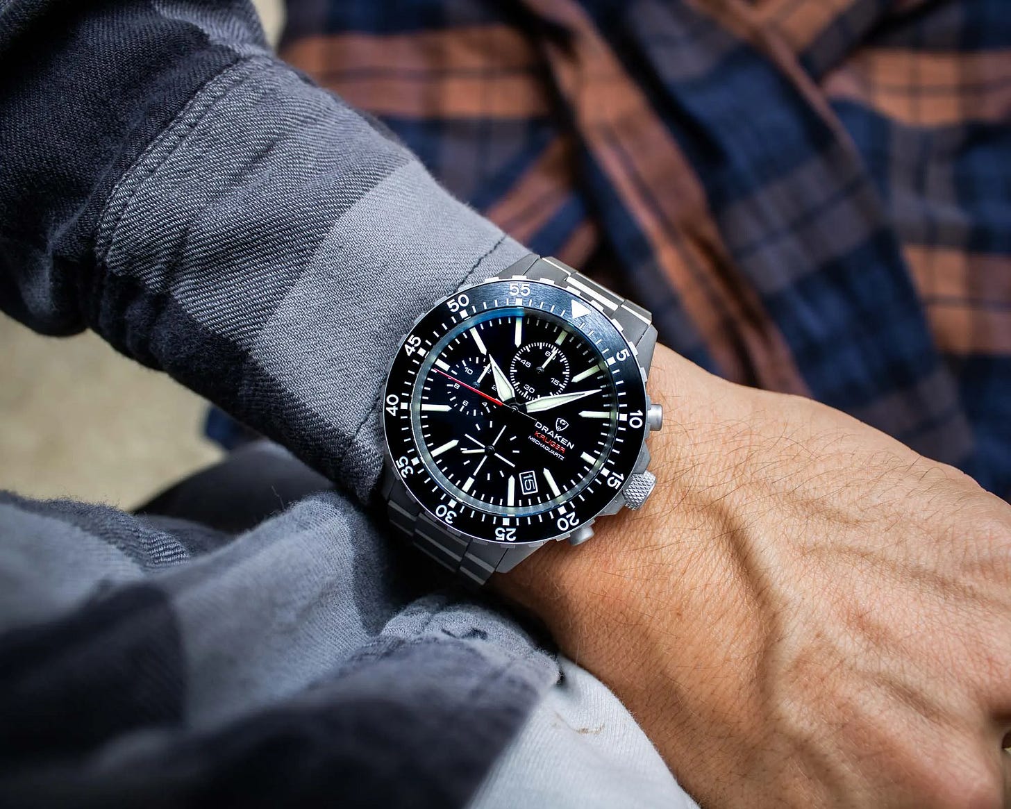 The Kruger V2 pays tribute to Southern Africa’s rangers with a rugged yet comfortable chronograph designed for daily wear. Options span Swiss automatic movements in premium variants and Seiko mechaquartz in standard models, with multiple dial layouts, bezels, and finishes. Built from grade 2 titanium with a scratch-resistant coating, it features a domed sapphire crystal, bidirectional rotating bezel, excellent lume, and easy strap changes. Prices range from $459 to $599, reflecting strong build quality and versatility. Read More >
