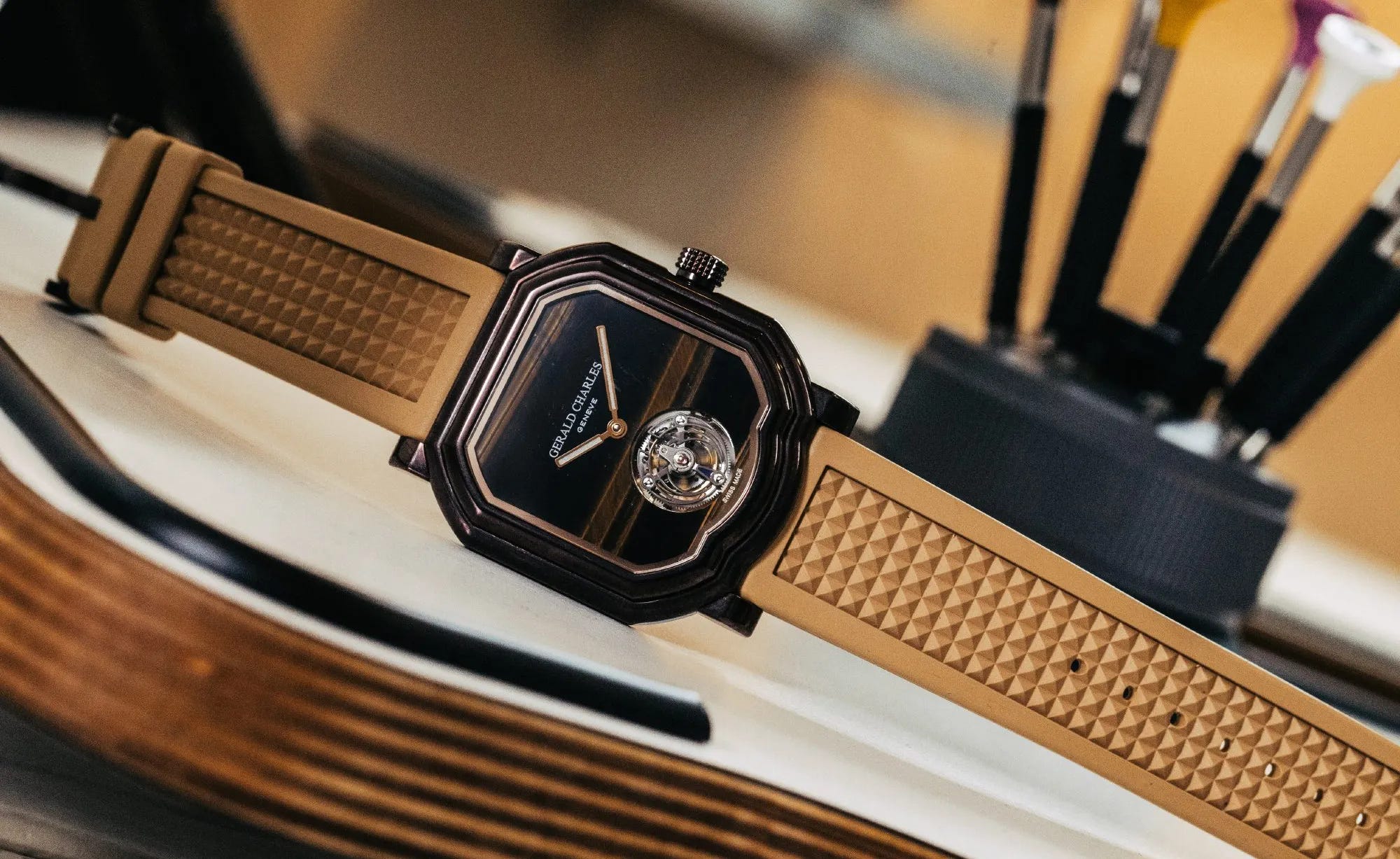 Materials are also having a moment as brands revisit steel, titanium, bronze, carbon, ceramic, and even wood or stone as design signatures. Dubai Watch Week doubled down on this trend with some eye-catching hardstone dials from Biver, Gerald Charles, H. Moser, Frederique Constant, and Gérald Genta, turning geology into high horology.