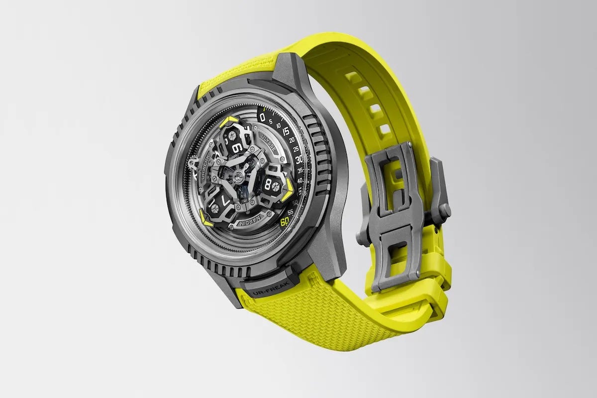 New releases today span everything from retro to orbital. Urwerk is leaning hard into its avant-garde identity with everything from the UR-Freak collaboration with Ulysse Nardin to the UR-150 Blue Scorpion. TAG Heuer adds neon, split-seconds tech, moonphases, and even solar power across Monaco, Carrera, and Formula 1, proving that the brand’s energy drink budget remains unlimited.