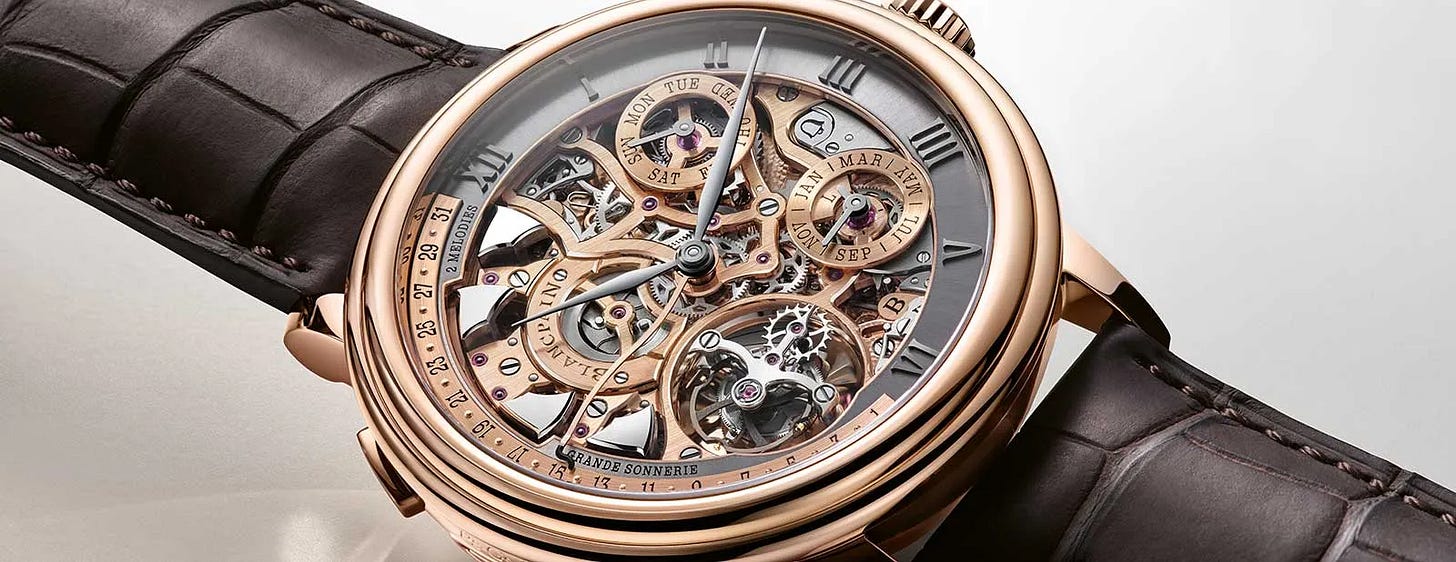 Blancpain unveils an ultra‑complicated wristwatch featuring a dual‑melody four‑tone chiming system, a flying tourbillon, and a retrograde perpetual calendar developed over eight years. The fully integrated 15GSQ movement comprises more than 1,000 components and incorporates 21 patents, including a magnetic regulator and acoustic membrane for enhanced sound. Only two pieces are produced each year, and each can be customized in materials and even melody selection. The result blends cutting‑edge acoustic engineering with traditional haute horlogerie finishing.